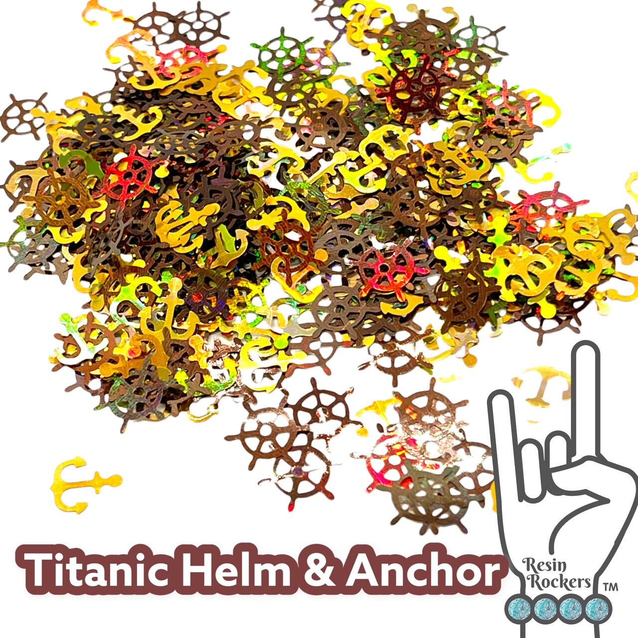 Titanic Helm and Anchor Holographic Glitter Shape Nautical