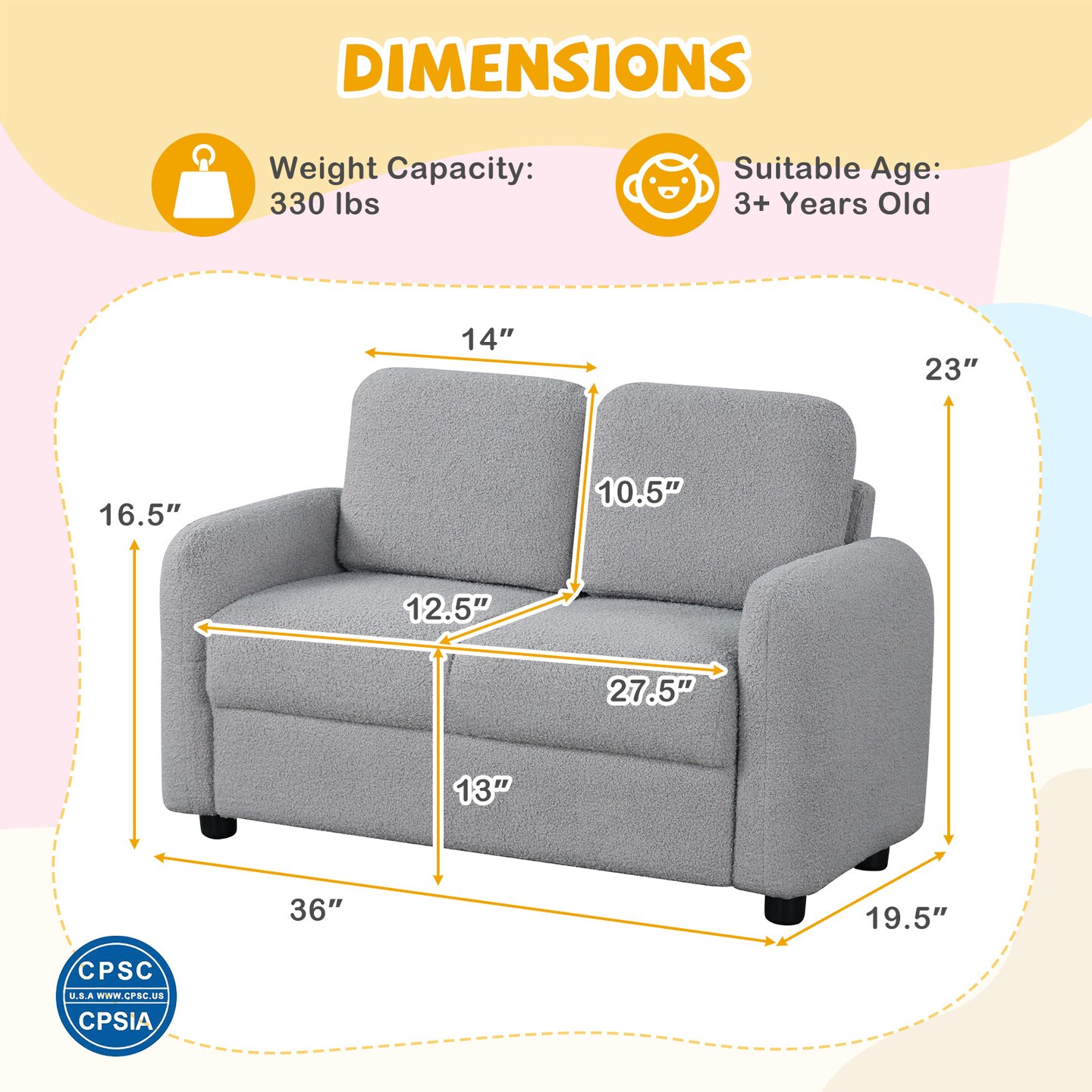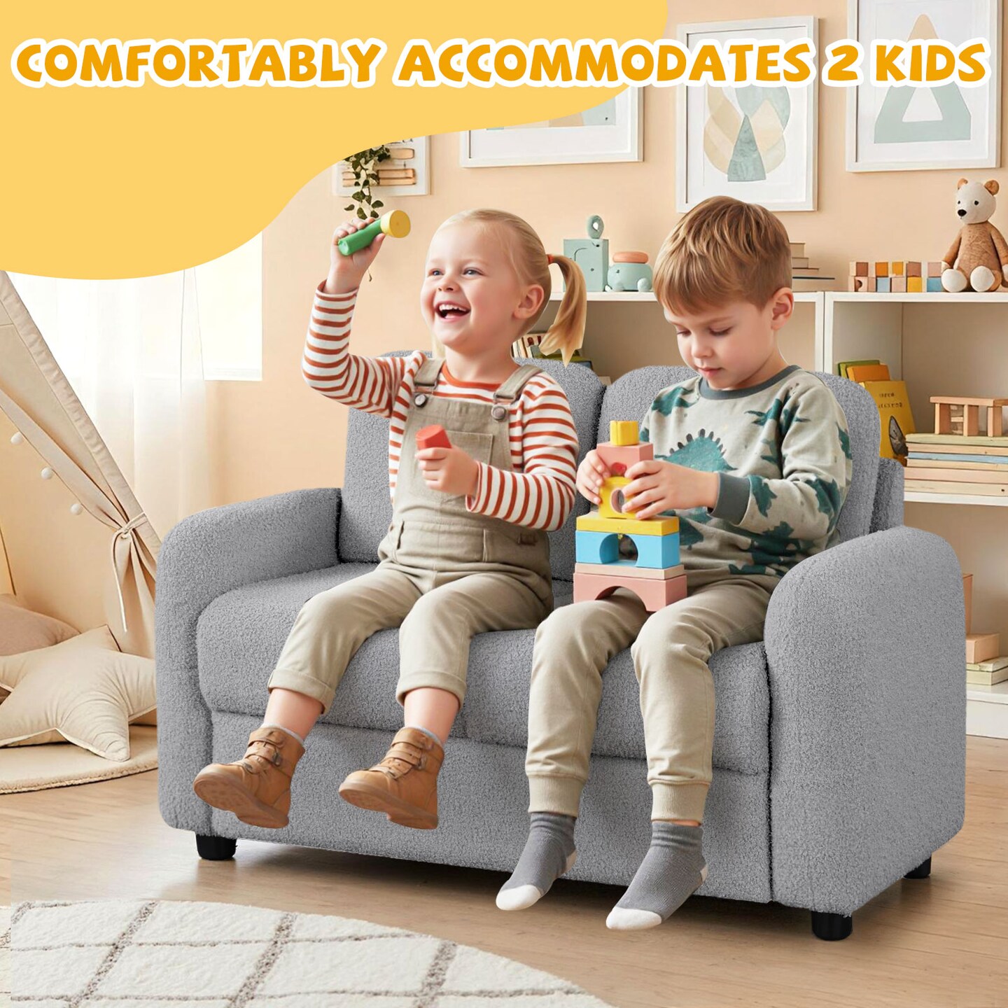 Toddler Sofa Couch 2 Seat Kids Sofa Teddy Fleece Upholstered