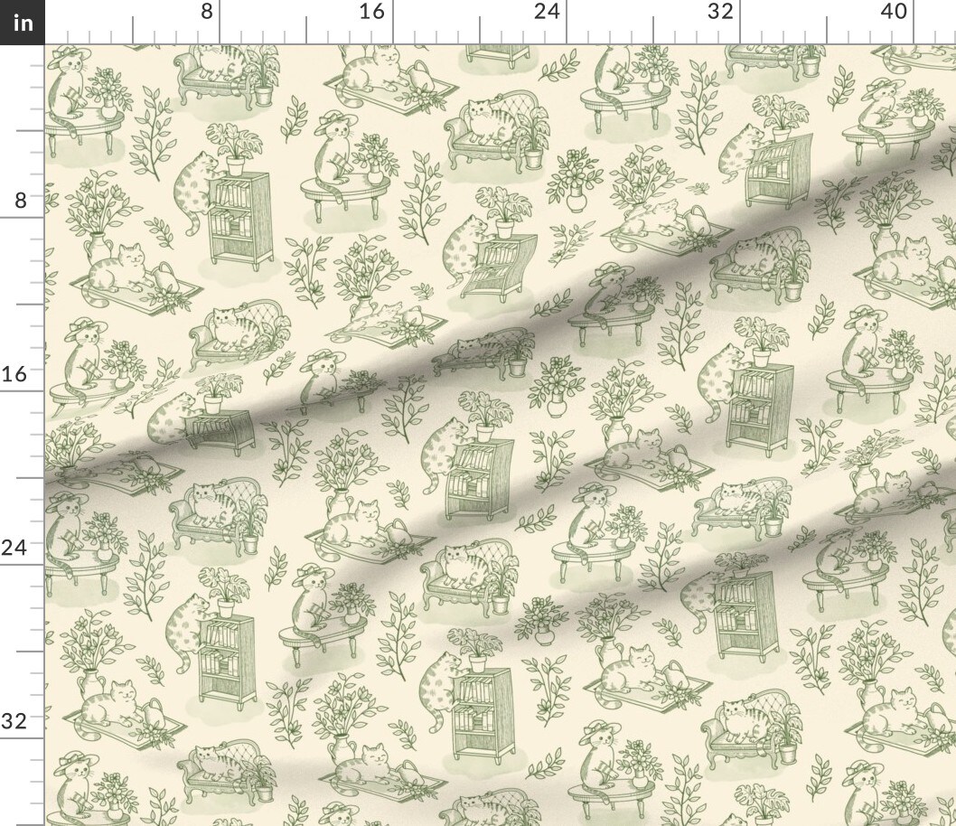 Toile Farmhouse Pet Cottagecore Plants De Jouy Custom Printed Fabric by Spoonflower Various Fabrics by the Yard or Fat Quarter