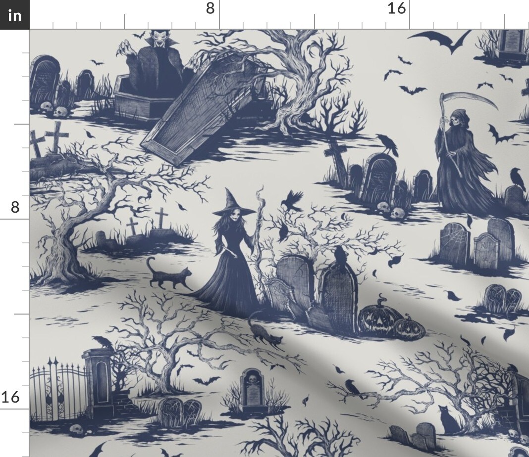 Toile Witch Halloween Dracula Grim Reaper Spooky Pumpkins Graveyard Vintage Victorian Haunted Gothic De Juoy Custom Printed Fabric by Spoonflower Various Fabrics by the Yard or Fat Quarter