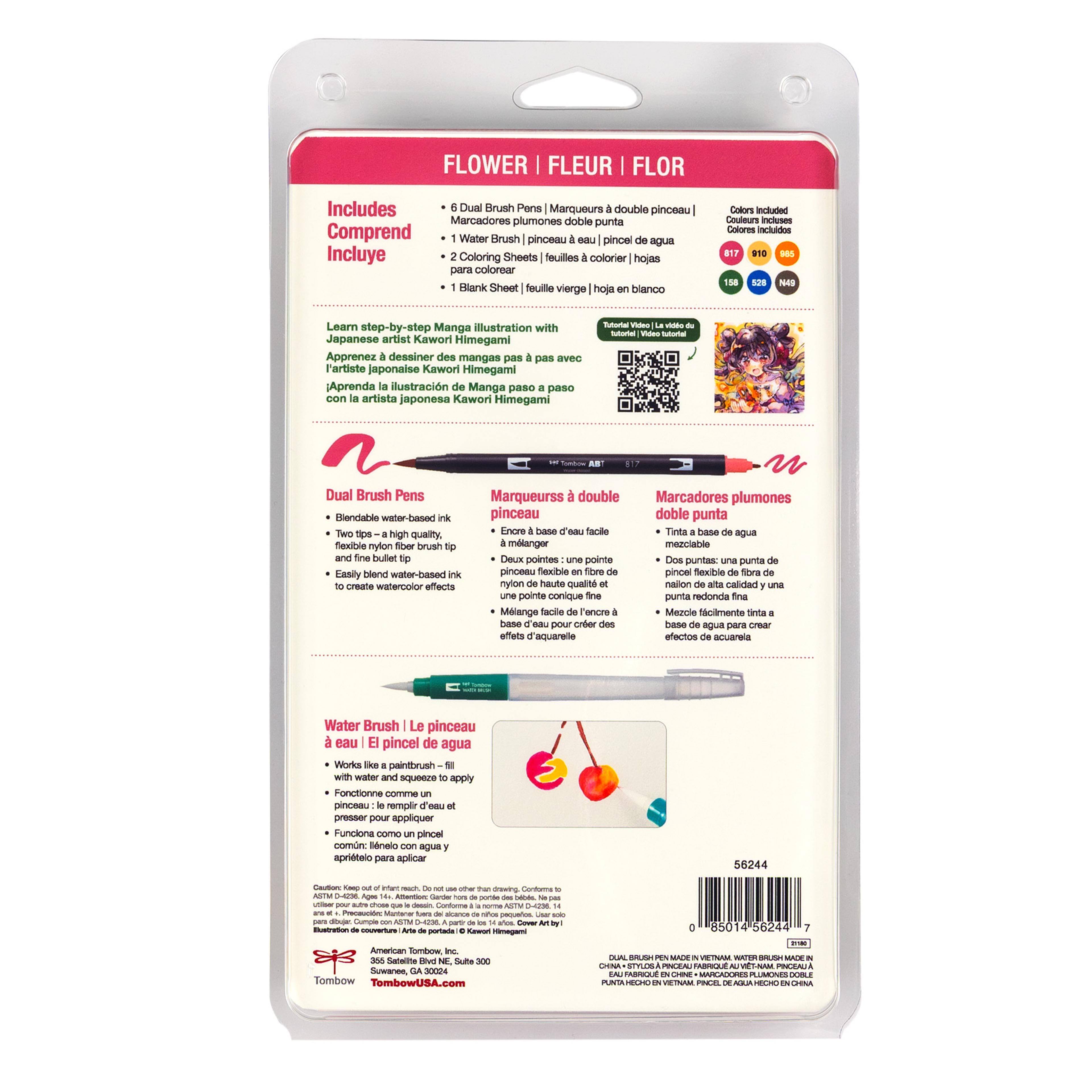 Tombow Flowers Manga Illustration Dual Brush Pen Art Set