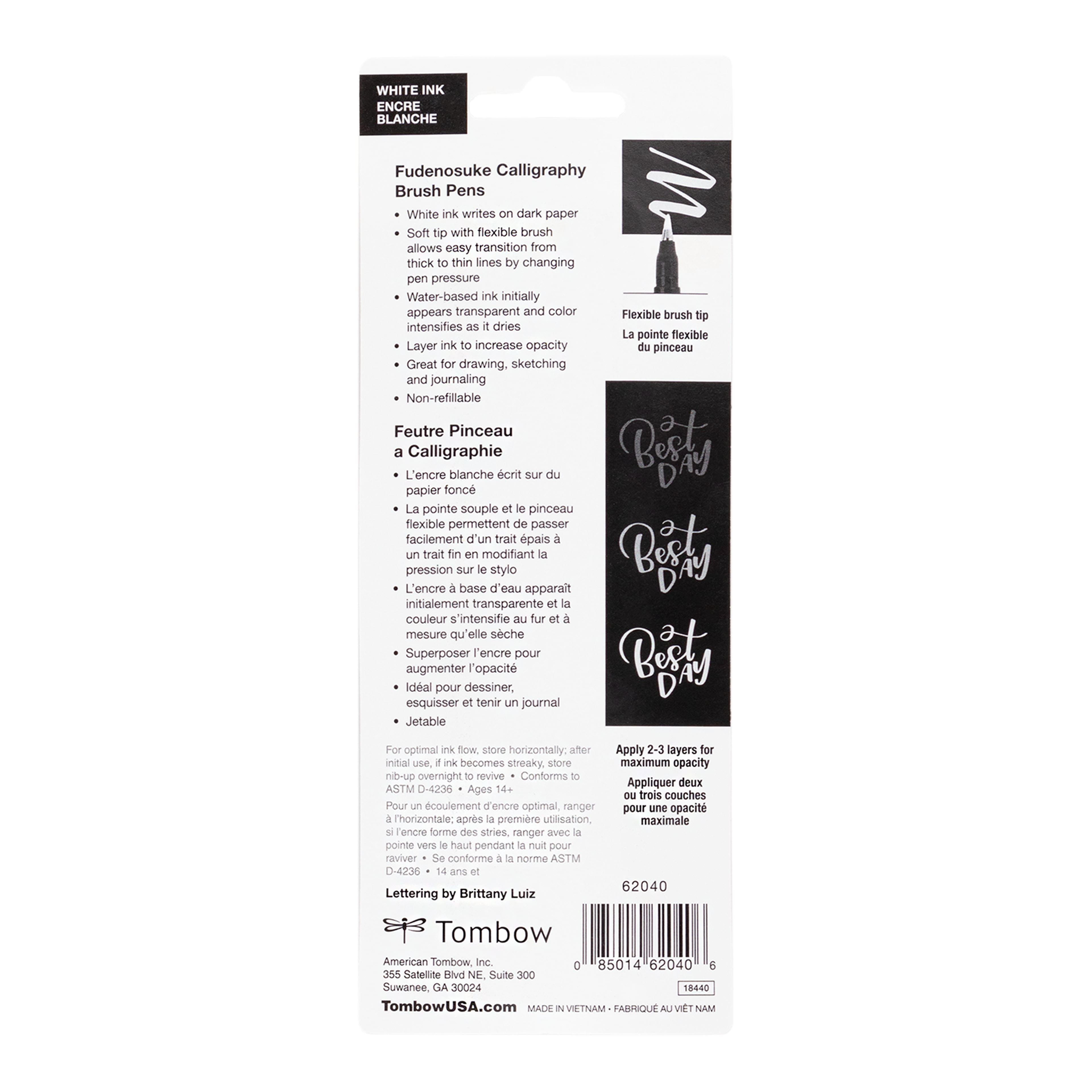 6 Packs: 2 ct. (12 total) Tombow Fudenosuke White Calligraphy Brush Pens