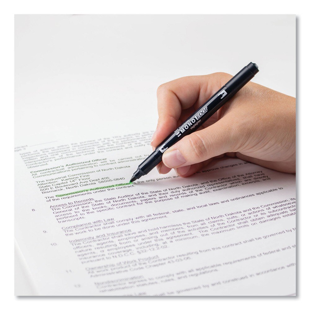 Tombow Mono Chisel/Bullet Tip Edge Highlighters - Yellow Green Barrel/Yellow Green Ink (10/Box)