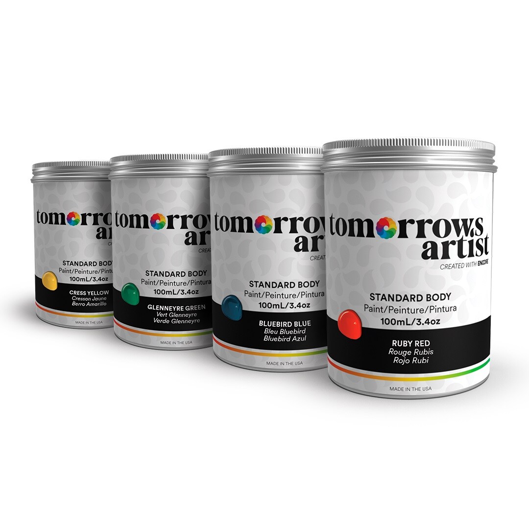 Tomorrows Artist: Standard Body Eco-Friendly Sustainable Acrylic Art Paint Bundles, 4 Pack 100/3.38oz or 250ml/8.45oz Jars
