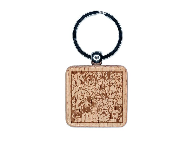 Too Many Dogs in a Box Engraved Wood Square Keychain Tag Charm