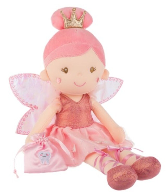 Tooth Fairy Plush Doll with Treasure Bag, Pink, 15" Inches, Pink