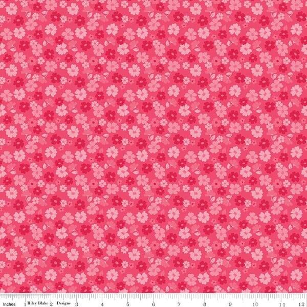 Tossed Flowers in Hot Pink (c16695-hotpink) | Zinnias | Lila Tueller | Riley Blake