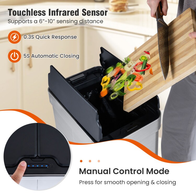 Touchless 16 Gallon Trash Can with Automatic Wing Lids and Anti-Fingerprint Finish
