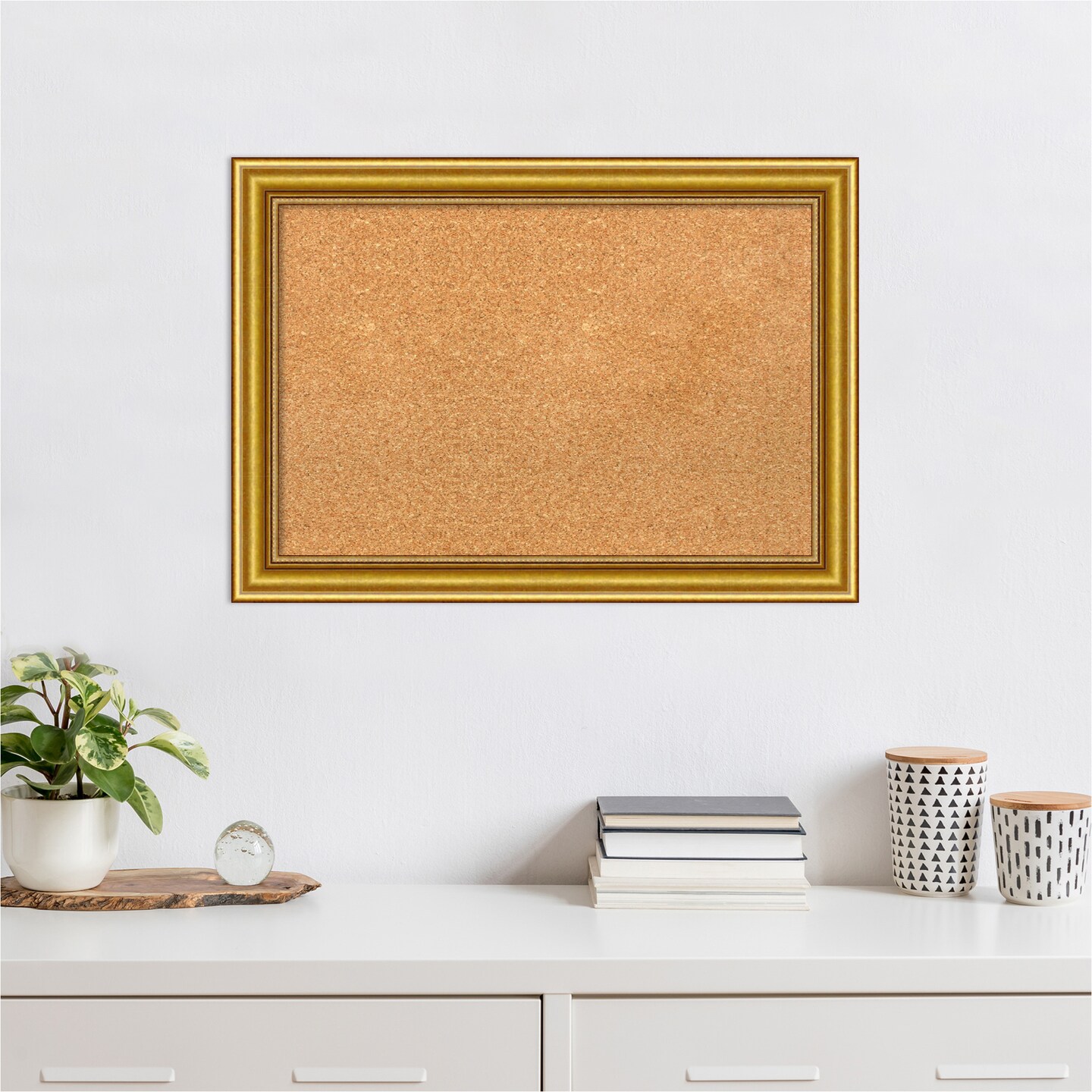 Townhouse Gold Wood Framed Corkboard, Natural Cork