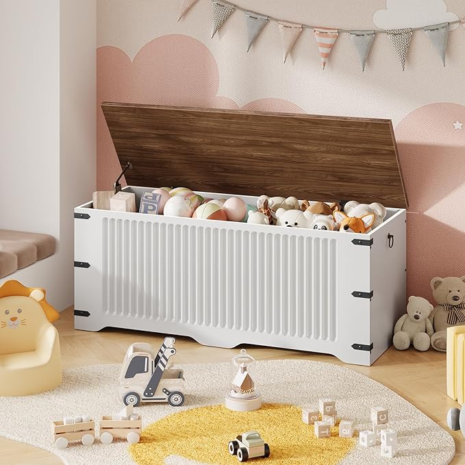 Toy Storage Chest with Lid Large Capacity Bench White
