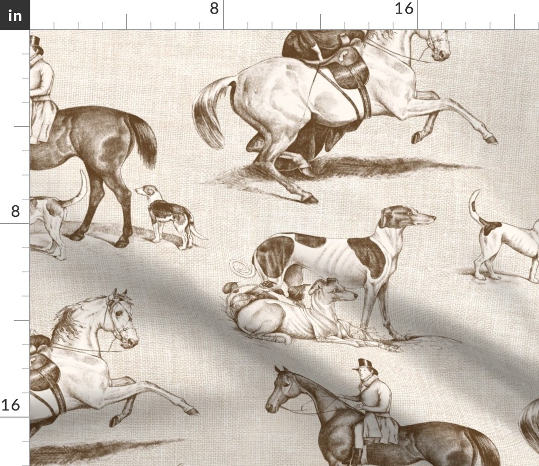 Traditional British Countryside Classic Sepia Horses Fox Hunt Equestrian Toile Vintage Horseback Riding Dogs Side Saddle Autumn Outdoor Sports Custom Printed Fabric by Spoonflower Various Fabrics by the Yard or Fat Quarter