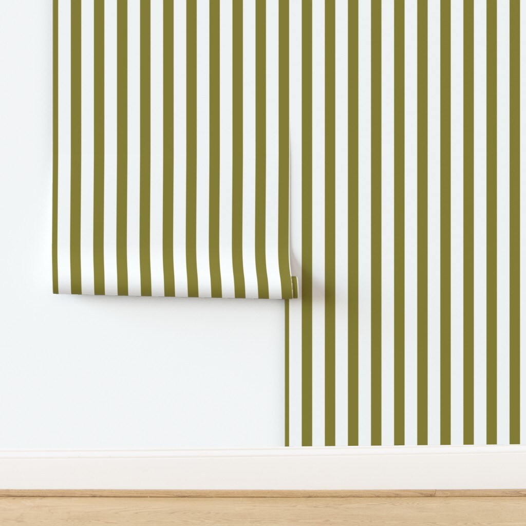 Traditional Classic Stripes Green Preppy Grandmillennial Small Stripe Minimalist Custom Removable Wallpaper by Spoonflower Peel & Stick Wallpaper 2FT Wide 17611331