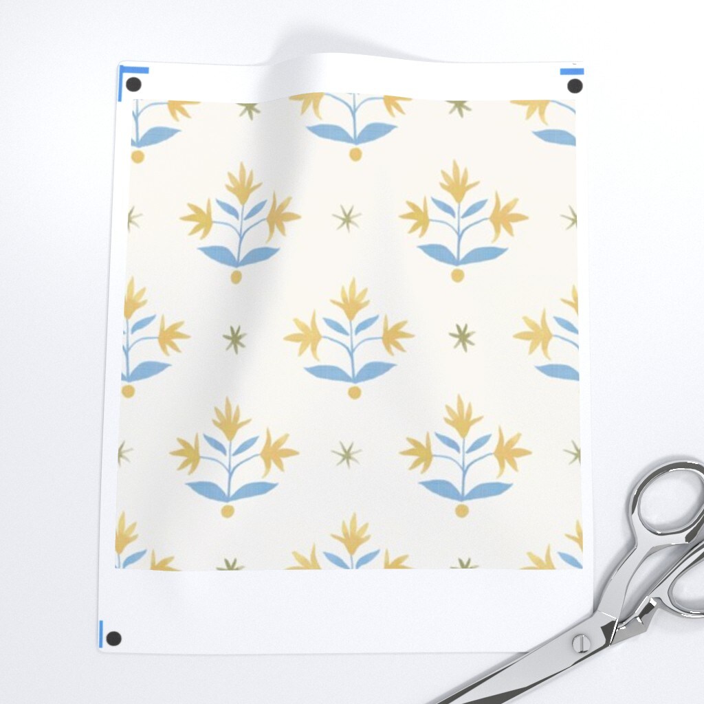 Traditional Floral Block Print Flower Meadow Cerulean Blue Marigold Olive Custom Printed Fabric by Spoonflower Various Fabrics by the Yard or Fat Quarter