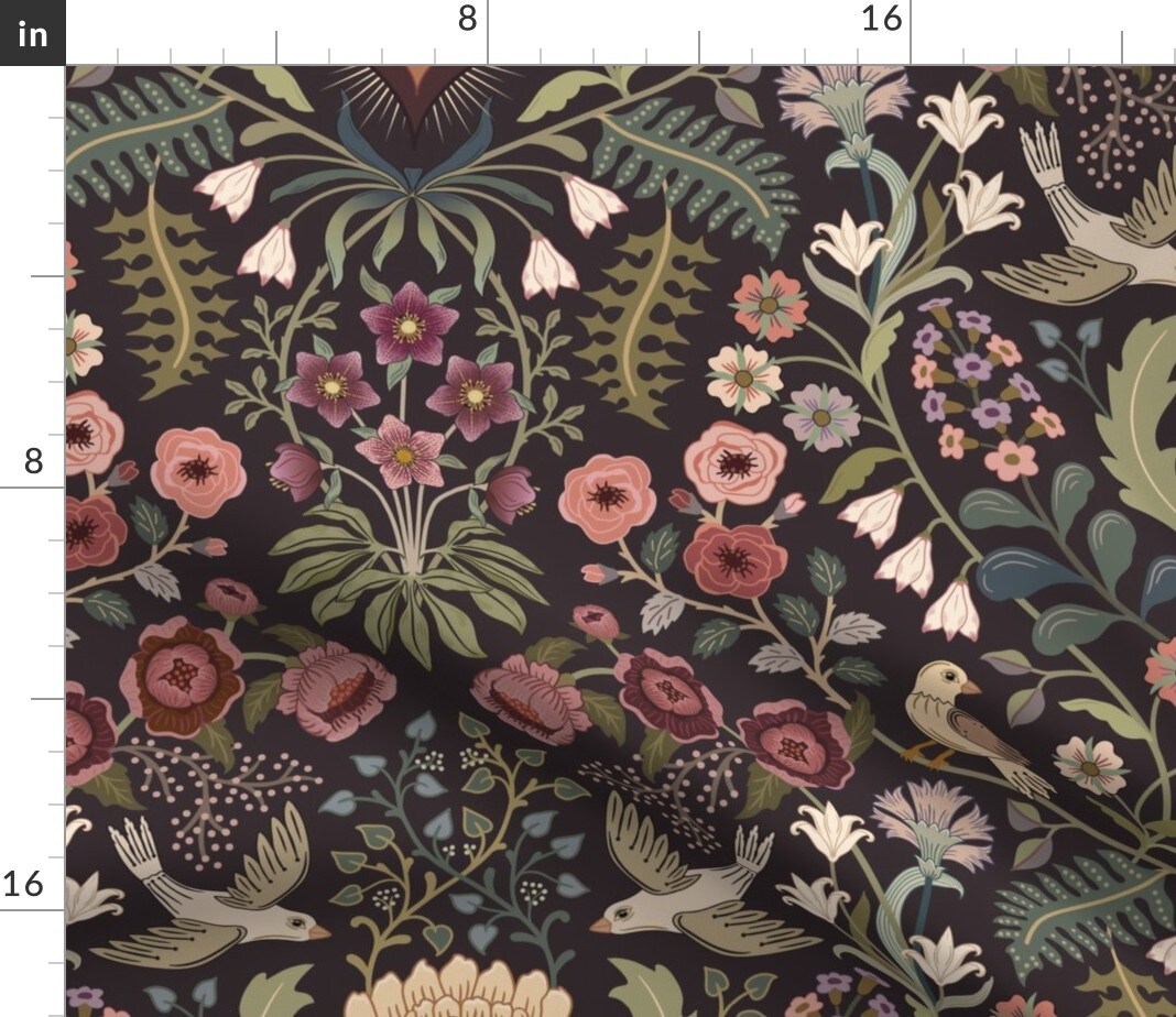 Traditional Floral Folk Art Birds Victorian Green Pinks Burgundy Extra Large Custom Printed Fabric by Spoonflower Various Fabrics by the Yard or Fat Quarter