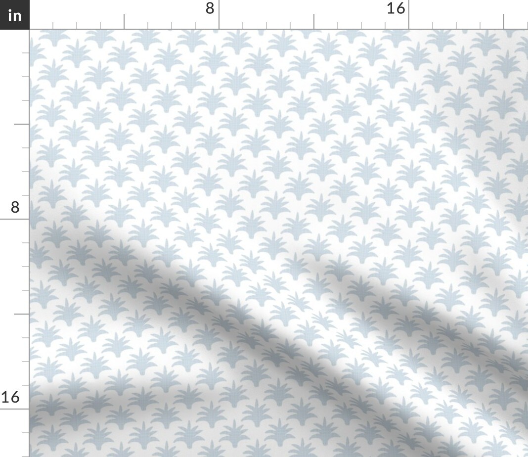 Traditional Palm Botanical Soft Blue On White Small Scale Custom Printed Fabric by Spoonflower Various Fabrics by the Yard or Fat Quarter