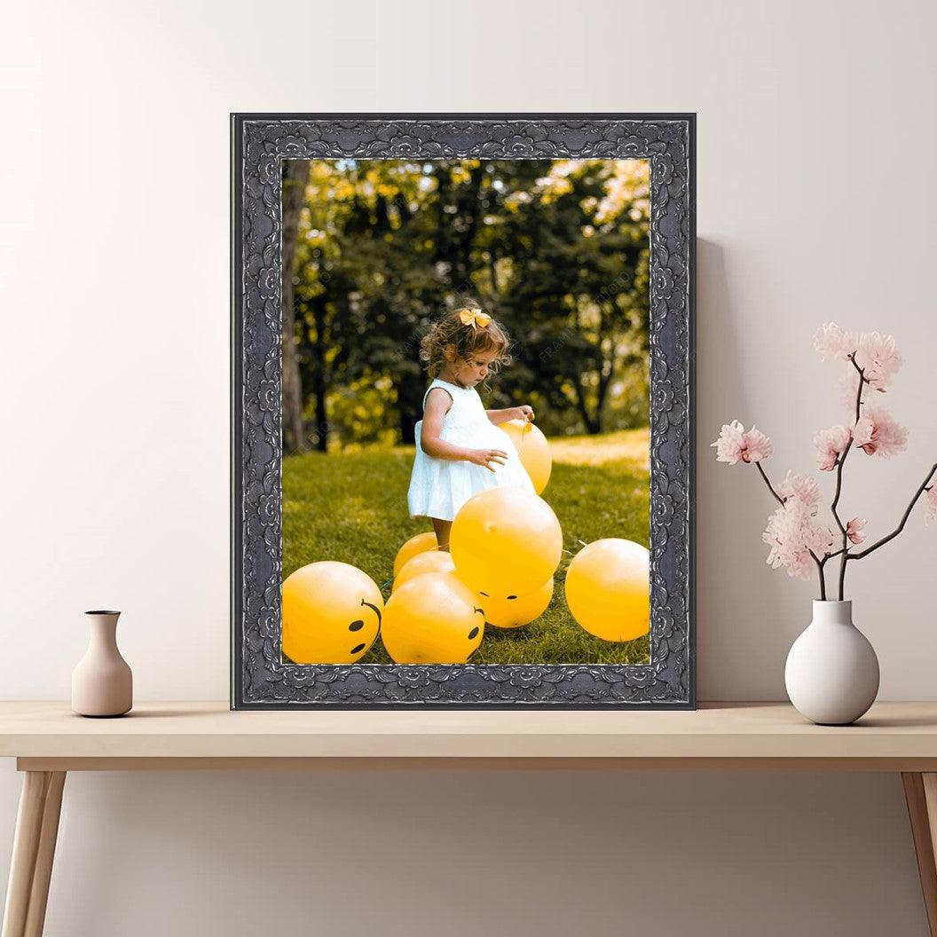 Traditional Renaissance Ornate Black Picture Frame with Silver