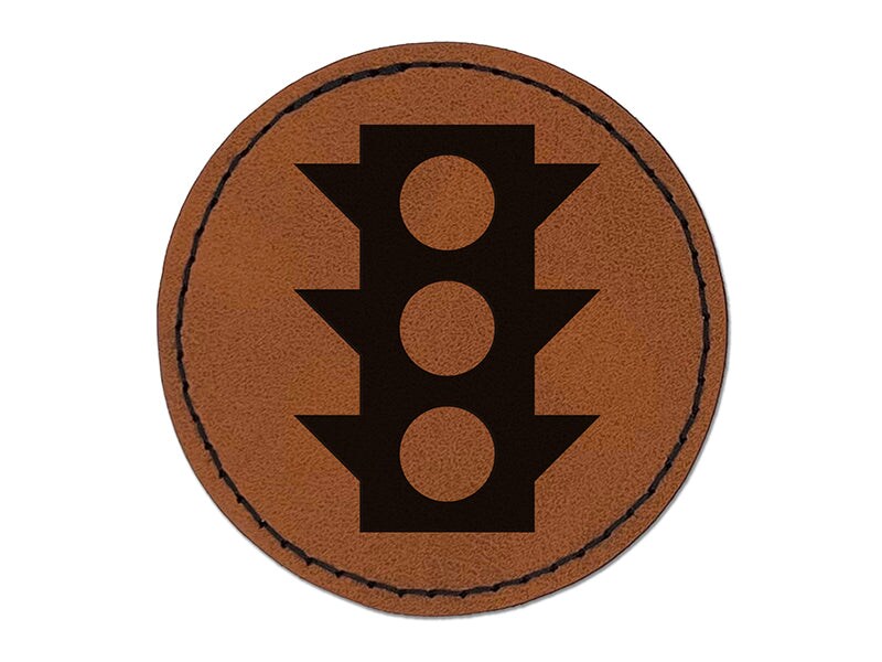 Traffic Light Icon Round Iron-On Engraved Faux Leather Patch Applique - 2.5"