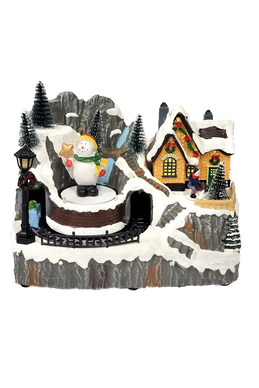 Train Scene with Snowman - Christmas Village Collection by Wizardi F07N5-11C
