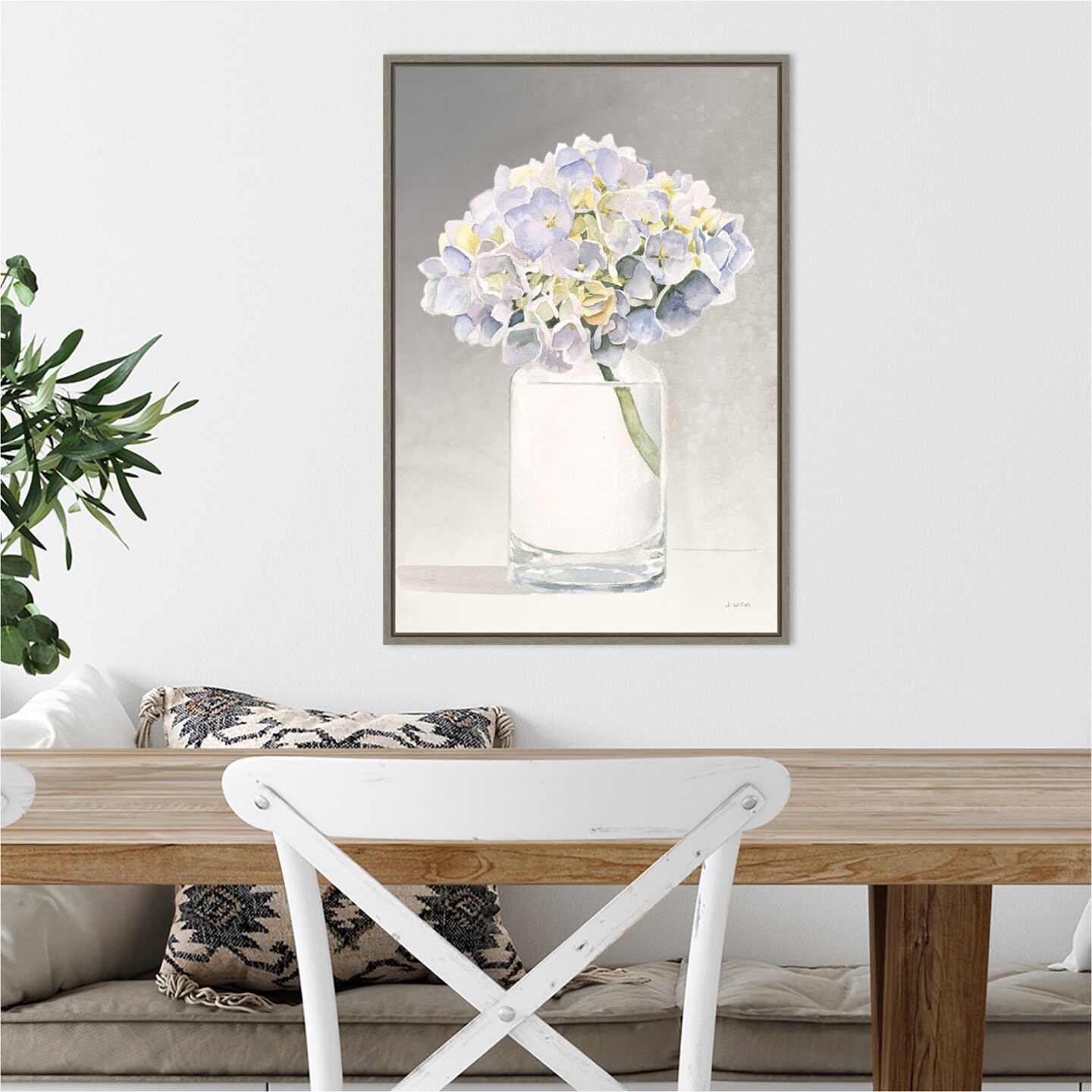 Tranquil Blossoms III (Hydrangea) by James Wiens 16-in. W x 23-in. H. Canvas Wall Art Print Framed in Grey