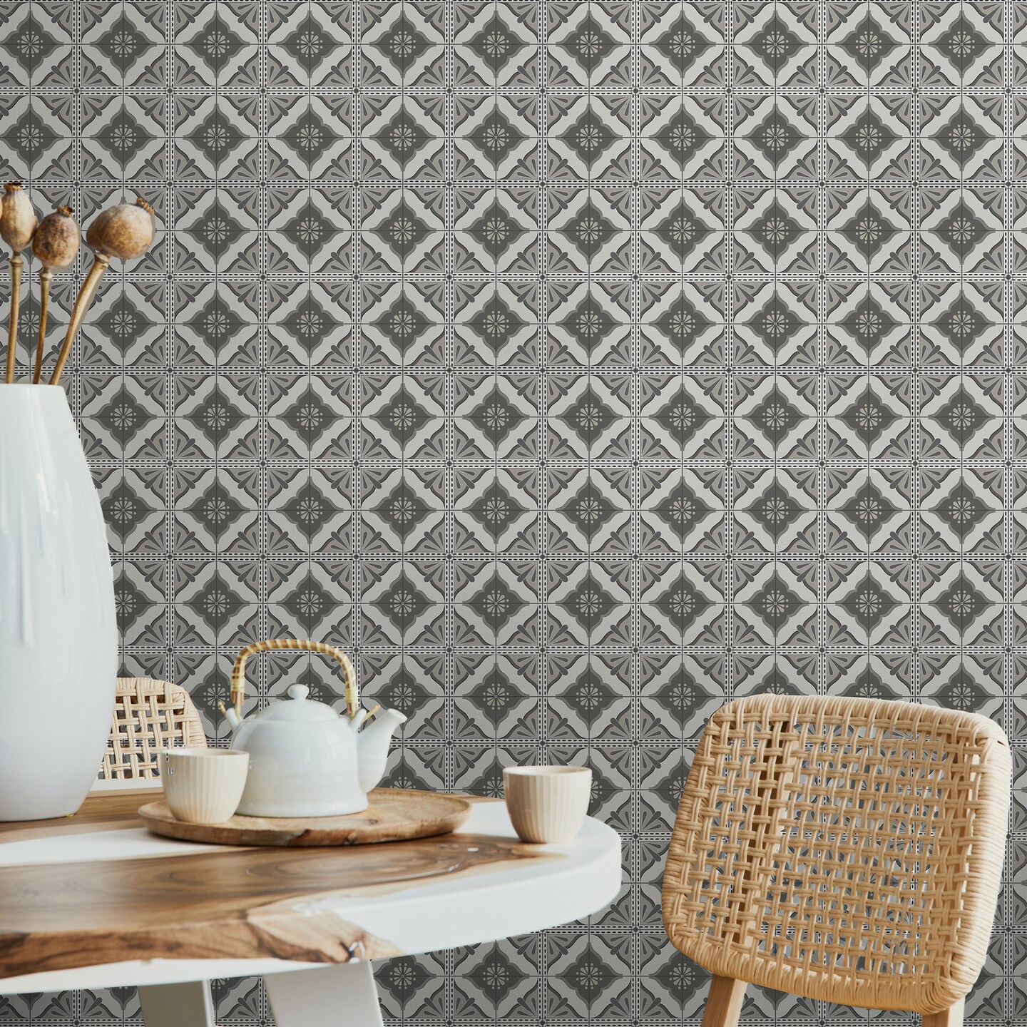 Transform Large Tile Mono Peel & Stick Wallpaper