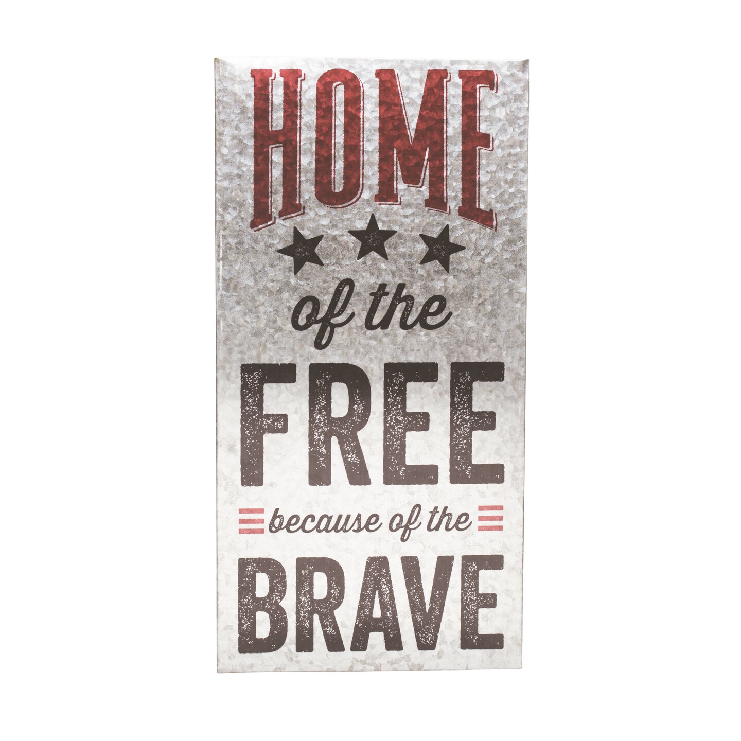 Transpac 24" Silver Patriotic Home of the Brave Wall Sign Decor, Metal Wall Art, Indoor Use, 1" Height, 12" Length, 24" Width, Spot Clean