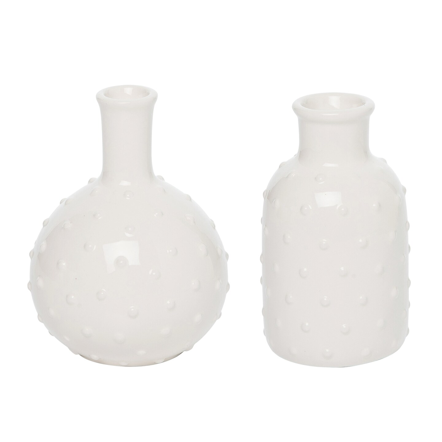 Transpac Ceramic 5.75 in. White Hobnail Vases Set of 2
