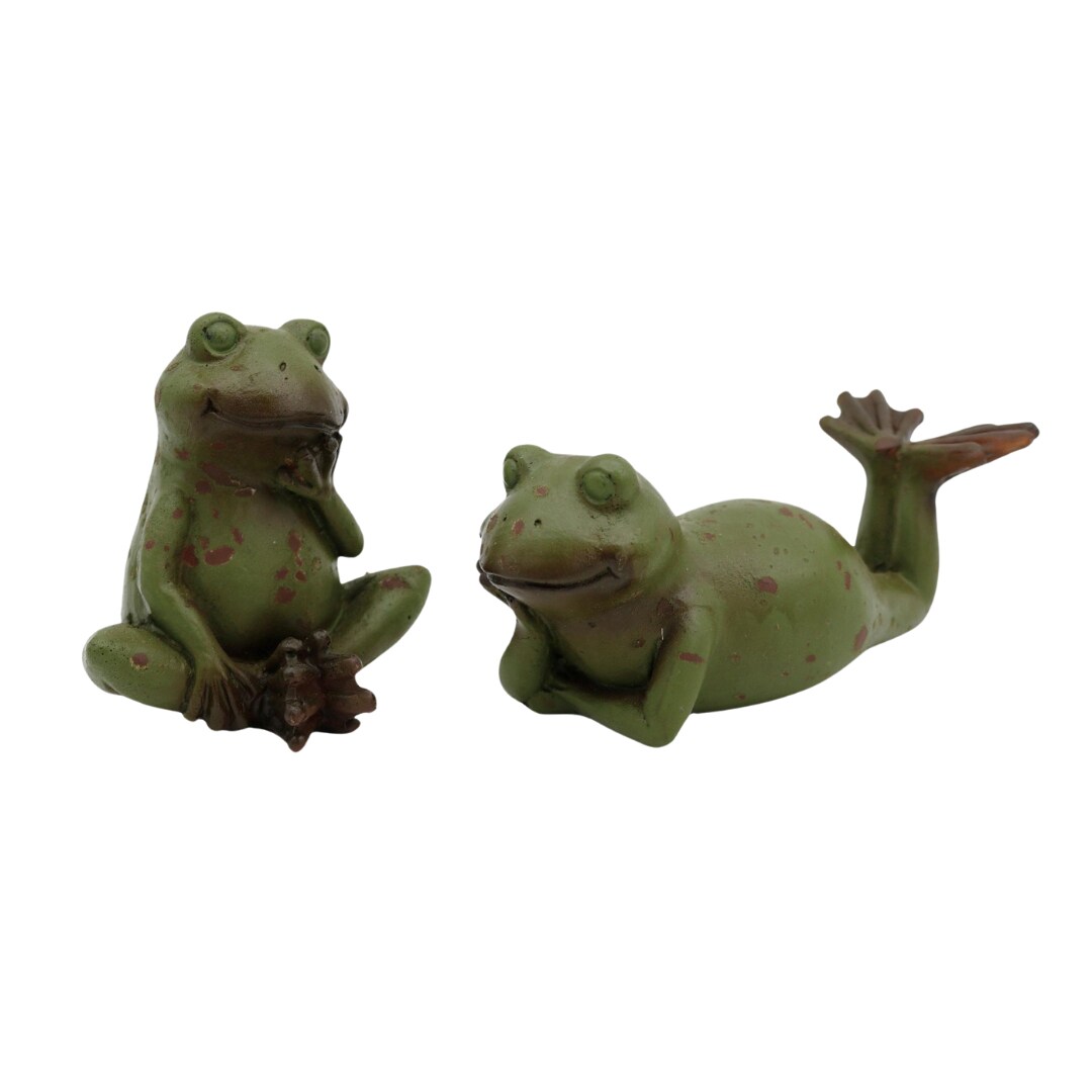 Transpac Set of 2 Resin Relaxing Garden Frogs - Charming Decorative Objects for Your Outdoor Space