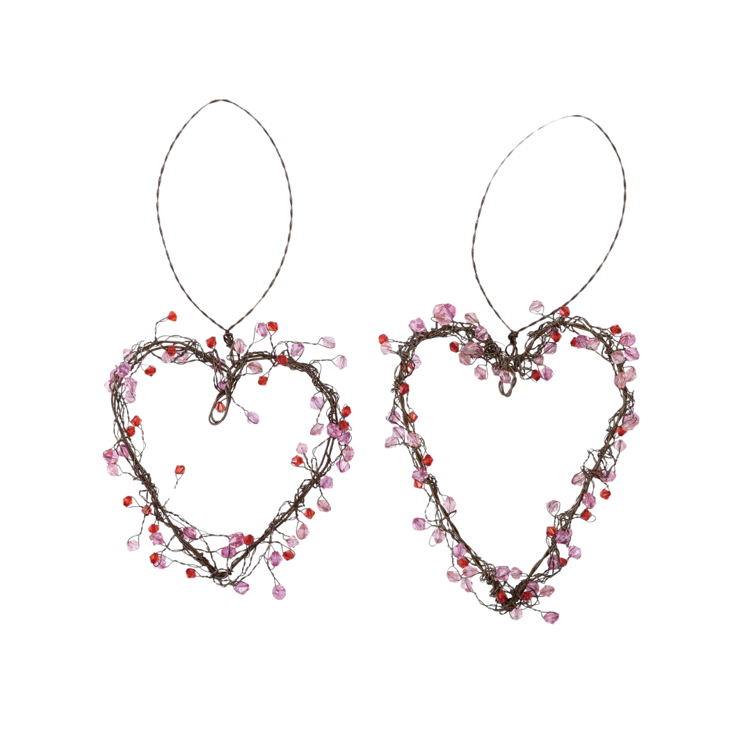 Transpac Wire Hanging Hearts with Red Beads, Set of 2, Pink Plastic Decorative Sculptures for Valentine's Day, 6in x 5in