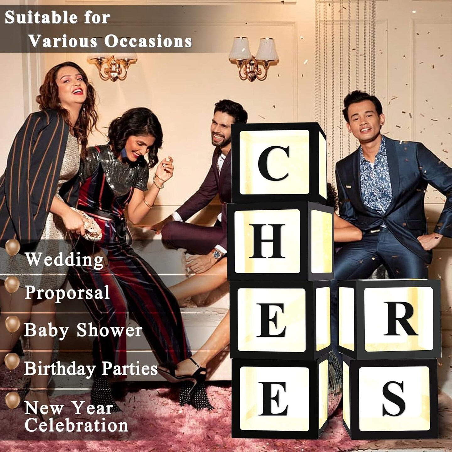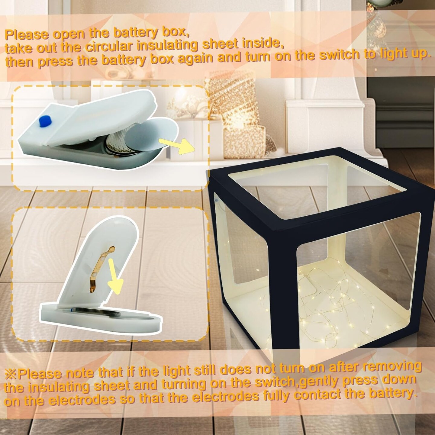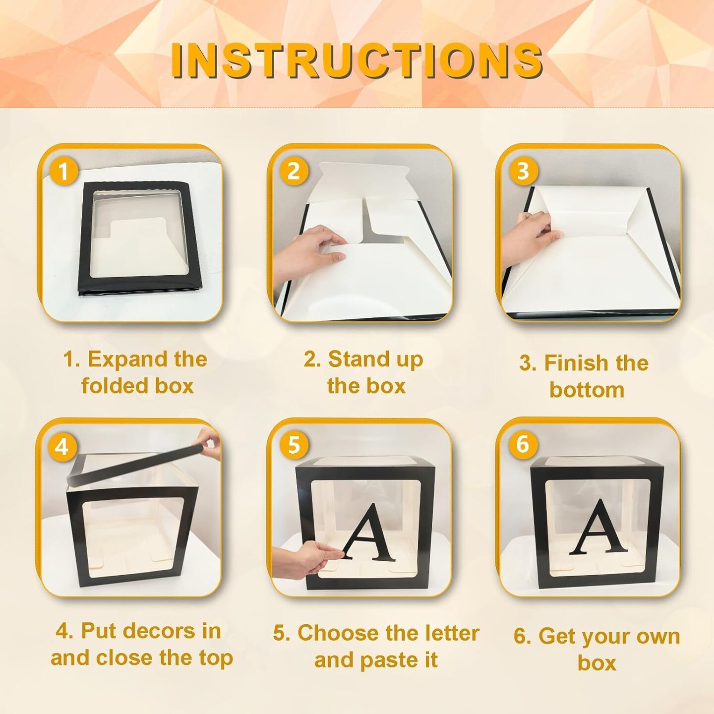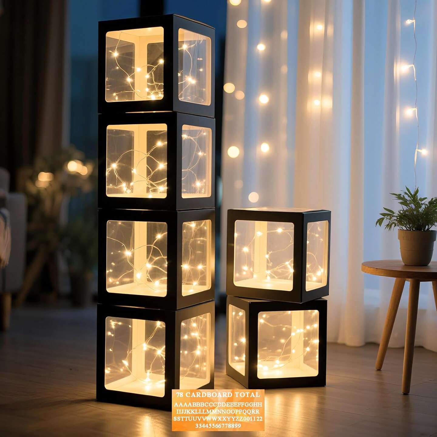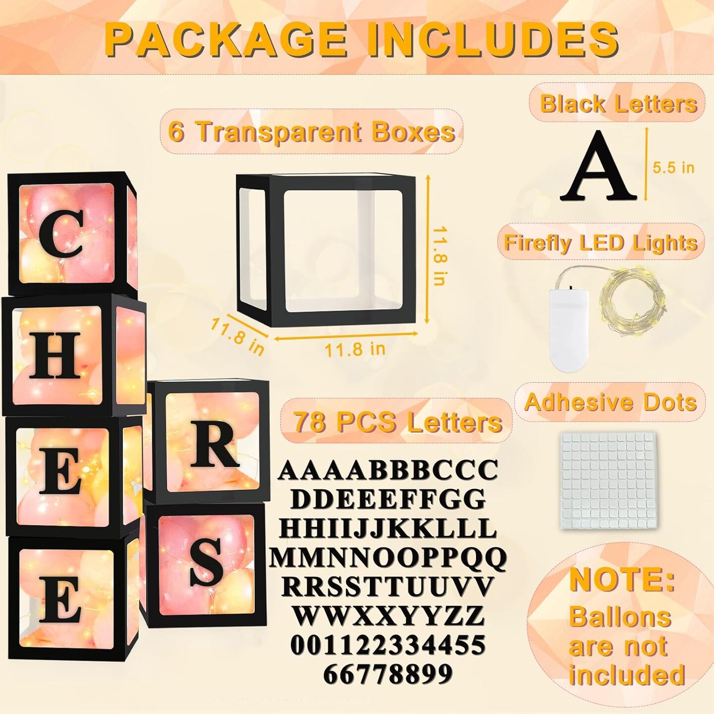 Transparent Balloon Boxes, Clear Balloon Boxes with 6 Pcs String Lights and 78 Letters for Baby Shower Gender Reveal Grad Birthday Party Anniversary Bridal Wedding Decor - 6 Black Boxes