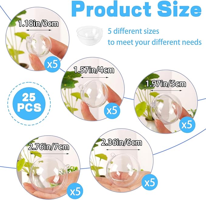 Transparent DIY Craft Ball,Clear DIY Christmas Ornament 5 Different Sizes for Wedding,Party,Home Decor
