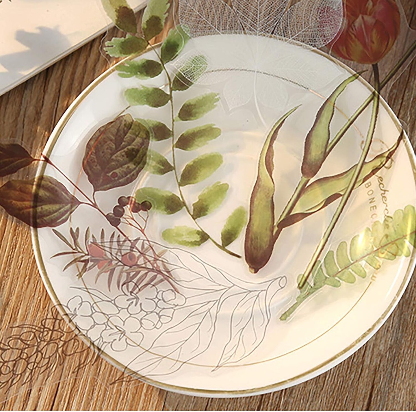 Transparent Nature Flower Stickers, 120PCS Waterproof Vintage Plants Flowers (Leaves and Flowers)