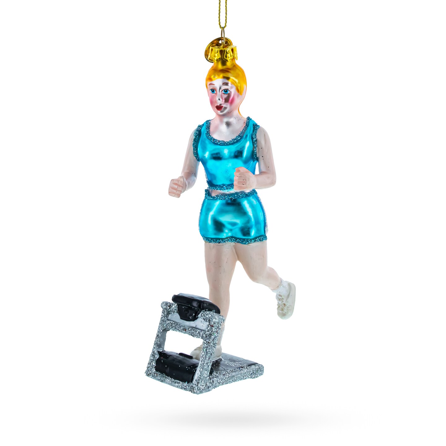 Treadmill Runner Fitness Girl Glass Christmas Ornament