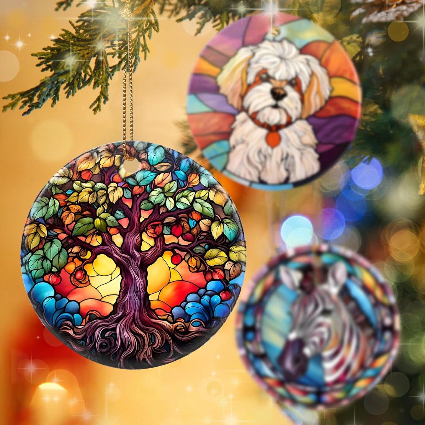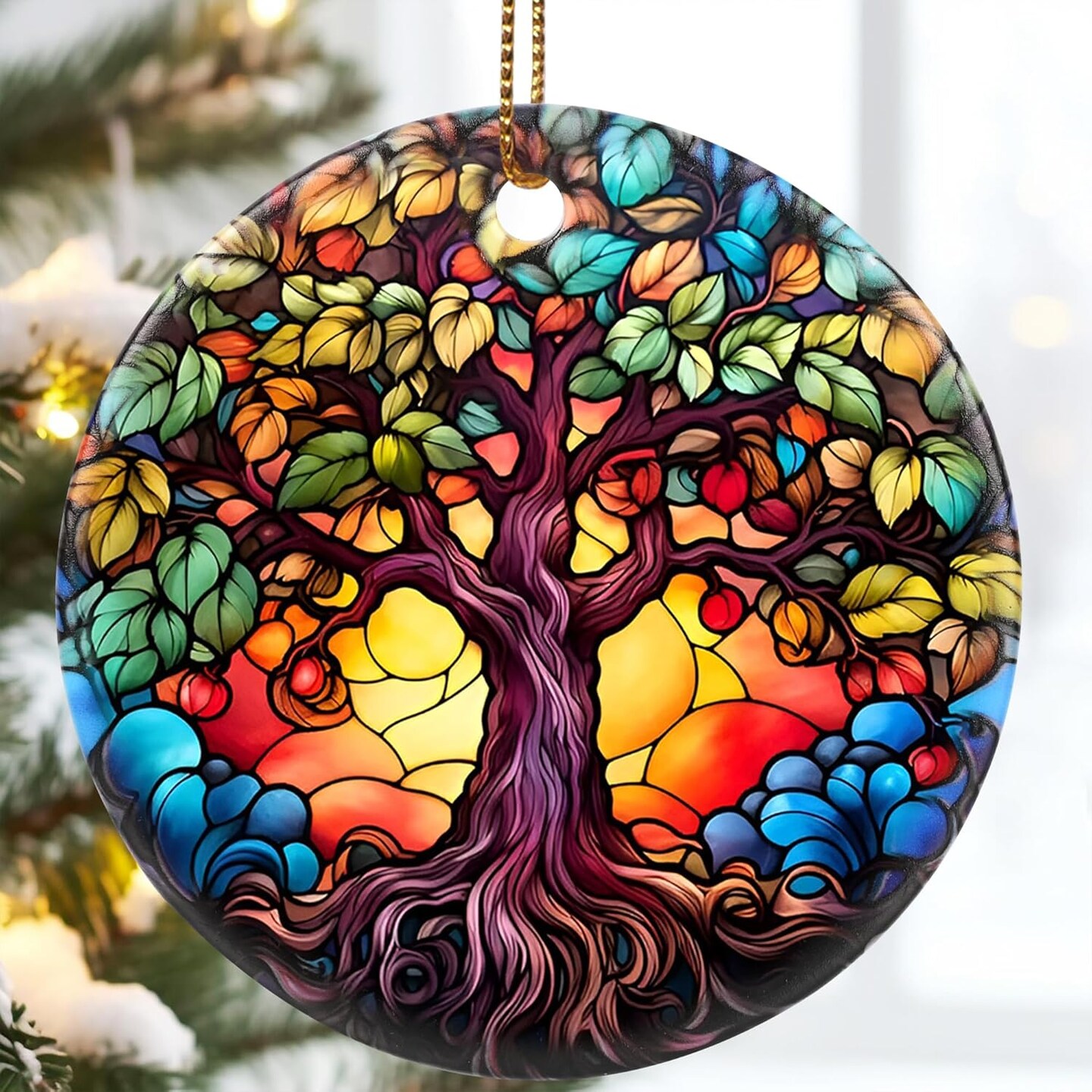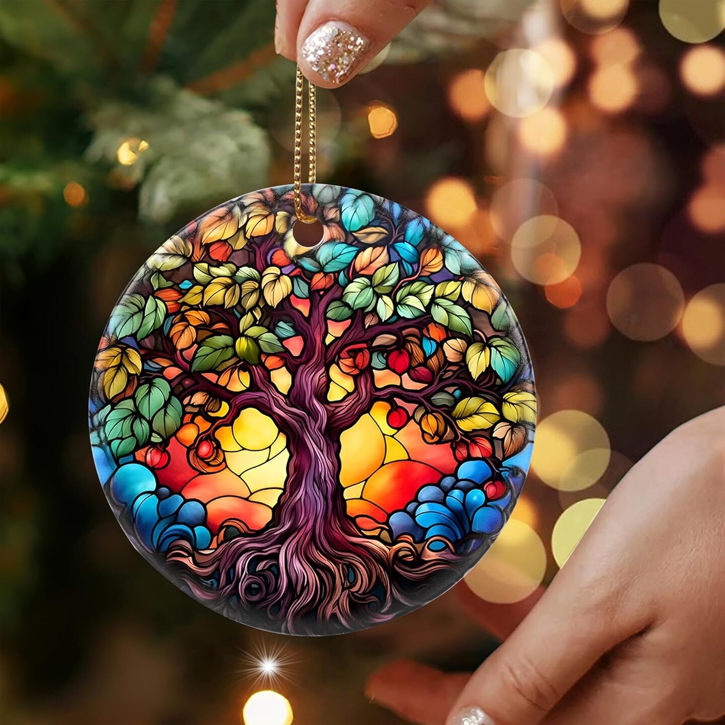 Tree of Life Ornament Christmas, 2.8" Ceramic Christmas Decoration, Tree of Life Christmas Tree Ornament, Holiday Ornament Gift, Tree of Life Themed Gifts, Christmas Keepsake Ideas