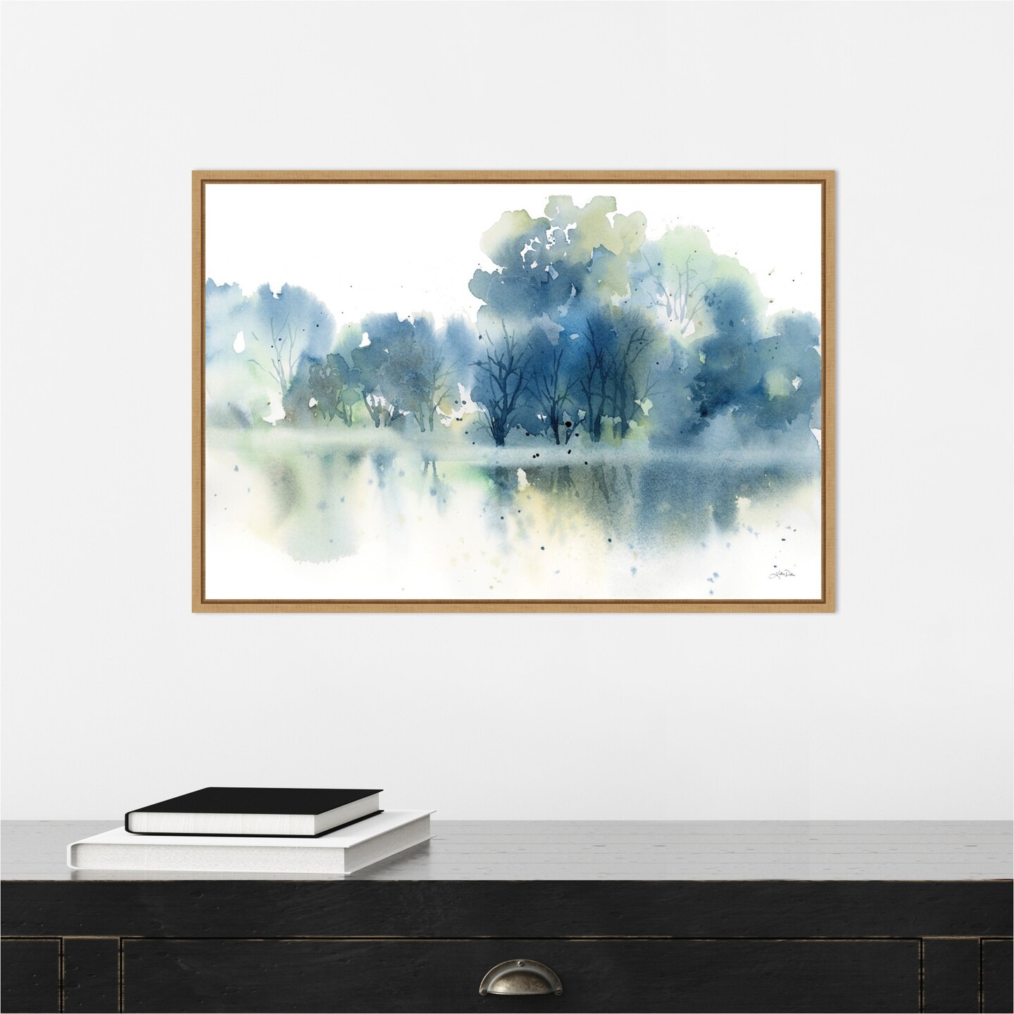 Trees Reflected in Blue Pond by Katrina Pete Canvas Art Framed