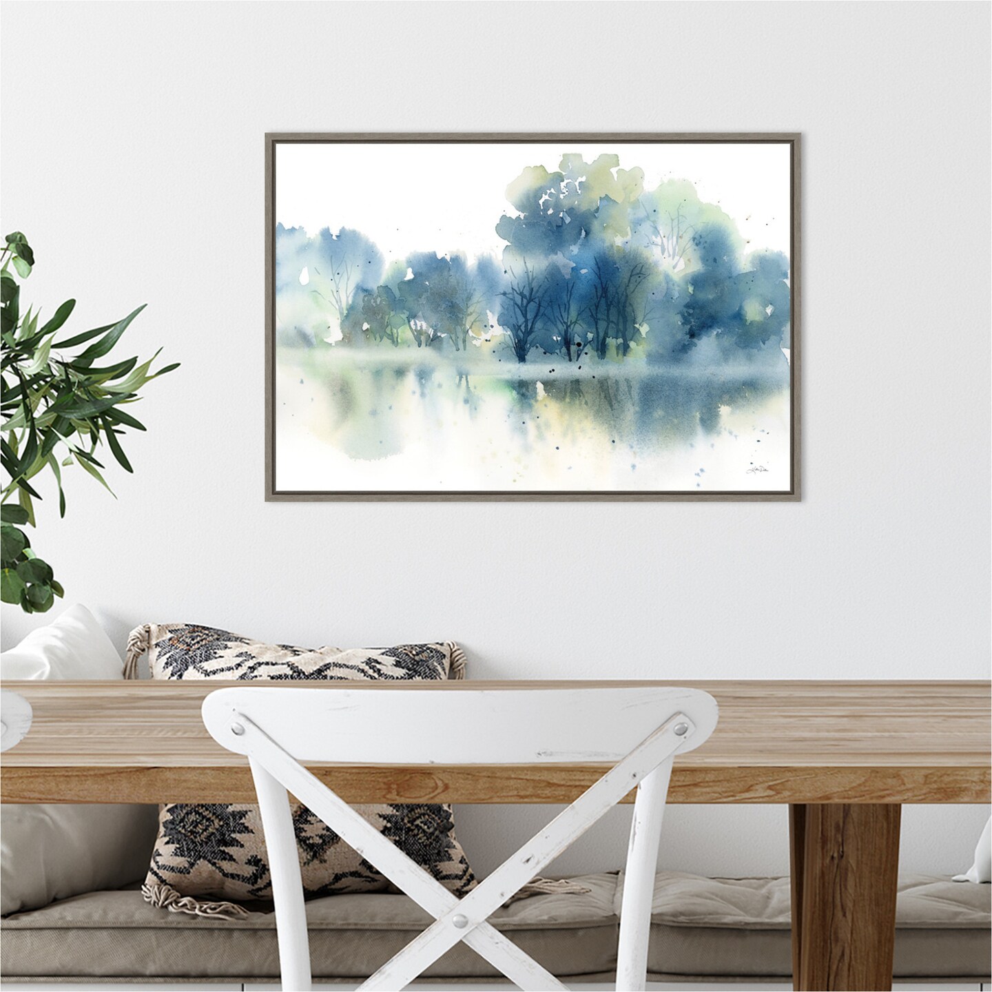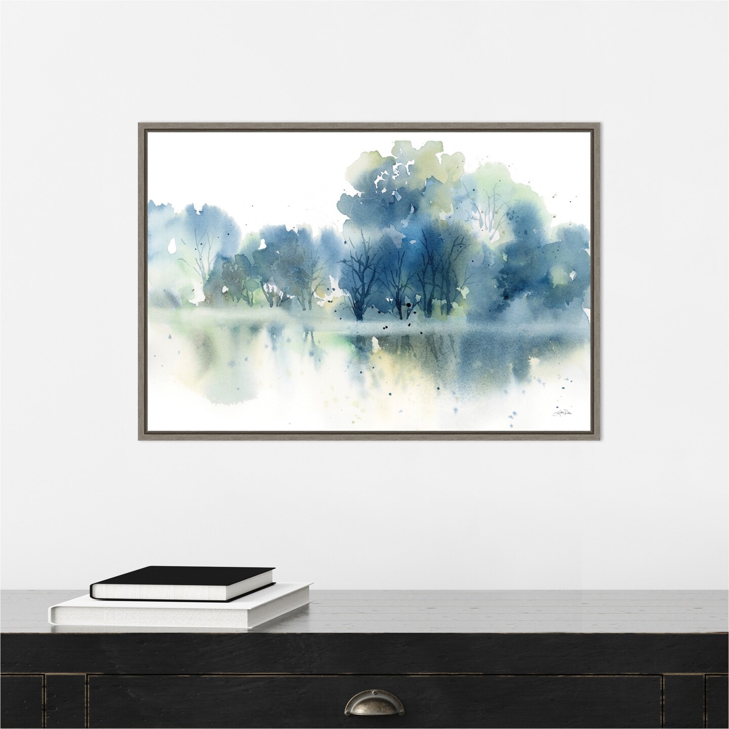 Trees Reflected in Blue Pond by Katrina Pete Canvas Art Framed