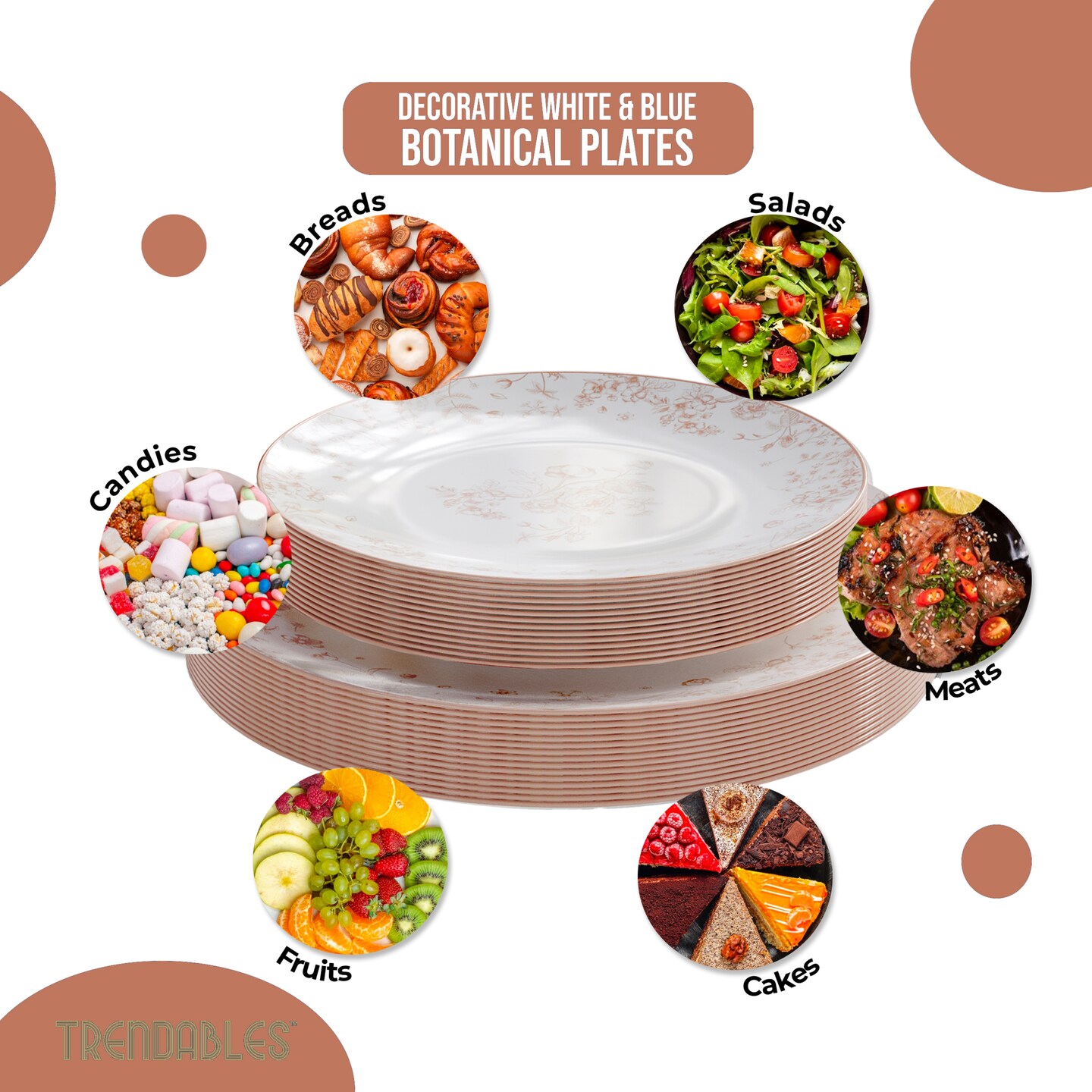 Trendables Disposable Dinnerware Decorative Plates Plastic Disposable Plates 8 Inch Dessert Plate & 10 Inch Wedding Party Plate Set