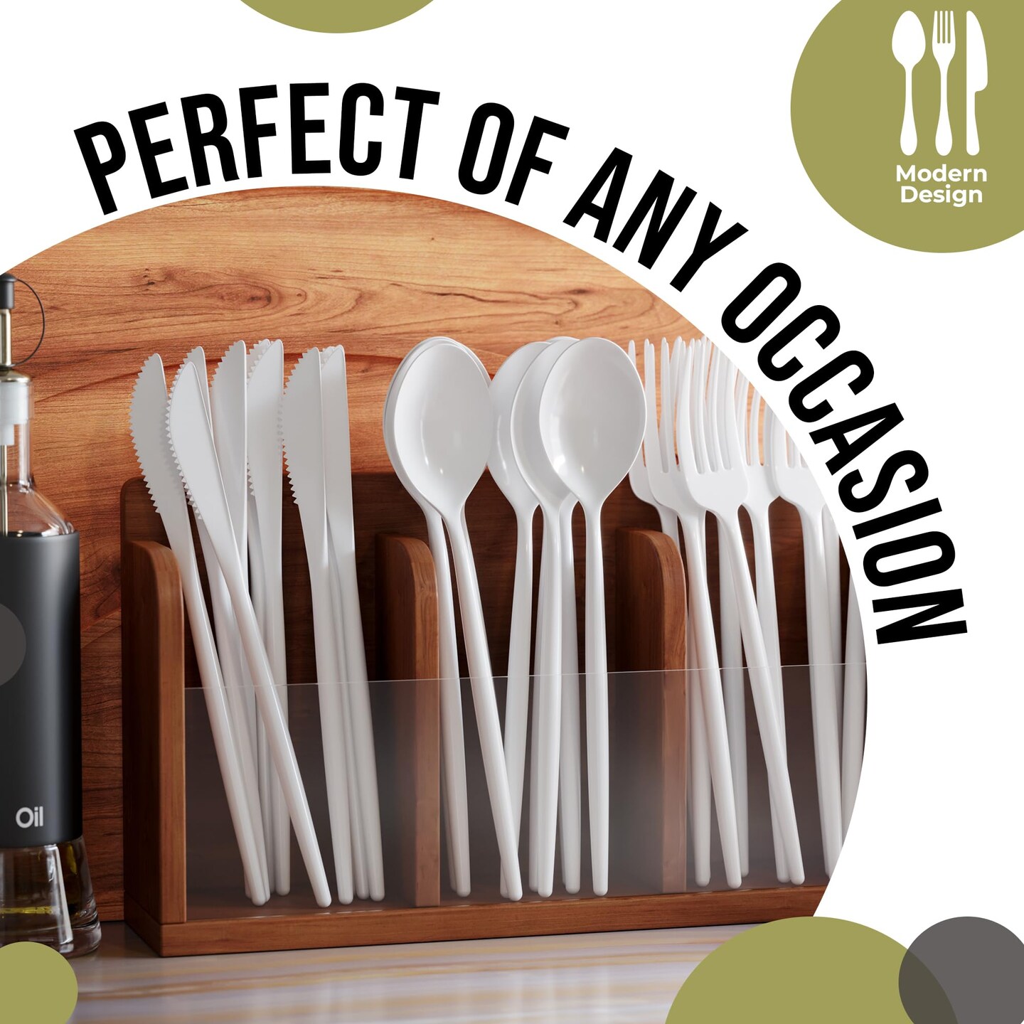 Trendables Disposable Silverware Set - Wedding Plastic Cutlery Dinnerware - Includes modern Forks, Plastic Spoons, disposable Knives - reflective Plastic Utensils Party Set