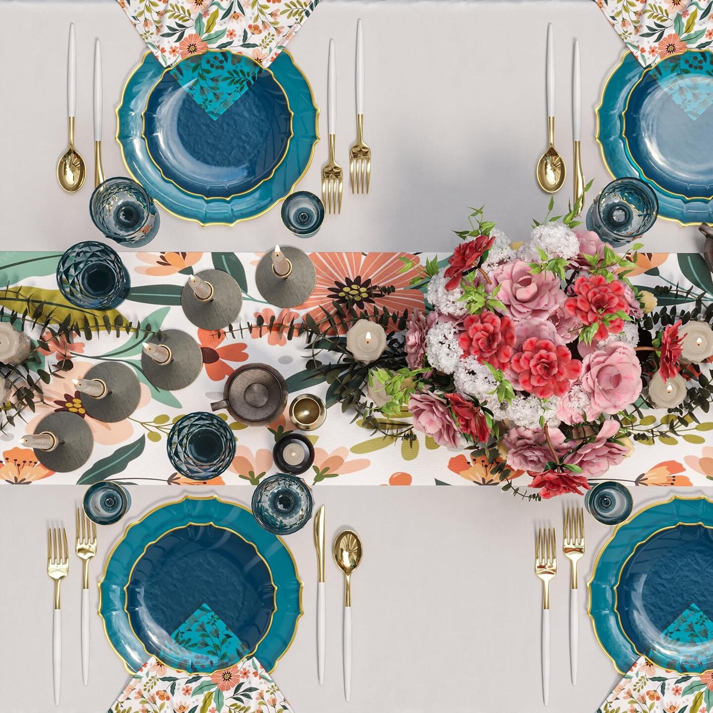 Trendables Plastic Plates for Party Fancy Plastic Dinner Plates For Guest 7.5 inch Dessert Plates & 10 Inch Thin Delicate Disposable Dinnerware Charger Plate Set