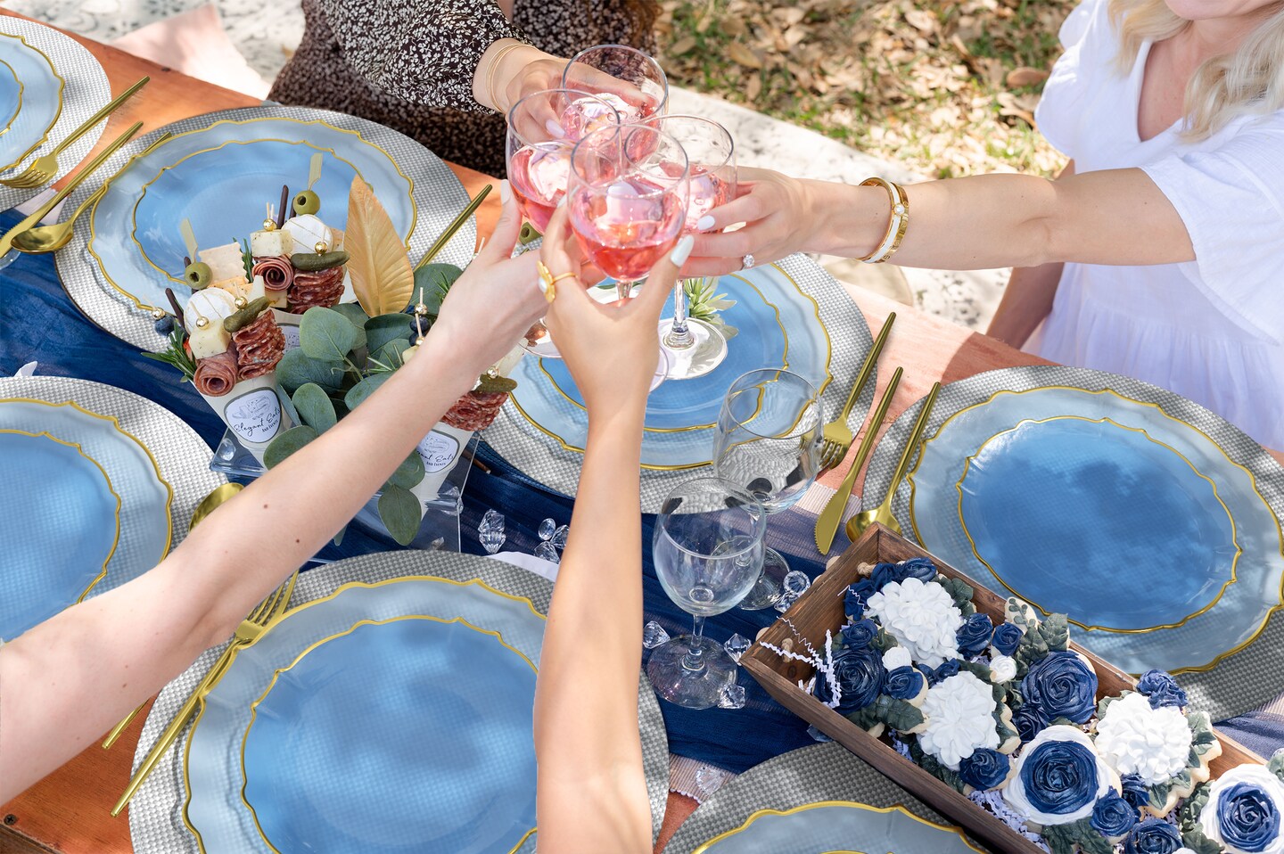 Trendables Plastic Plates for Party Fancy Plastic Dinner Plates For Guest 7.5 inch Dessert Plates & 10 Inch Thin Delicate Disposable Dinnerware Charger Plate Set