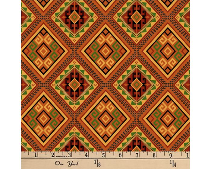 Tribal Diamonds Sunset Cotton Fabric | By the Yard | Sewing and Crafting | 44 inches wide
