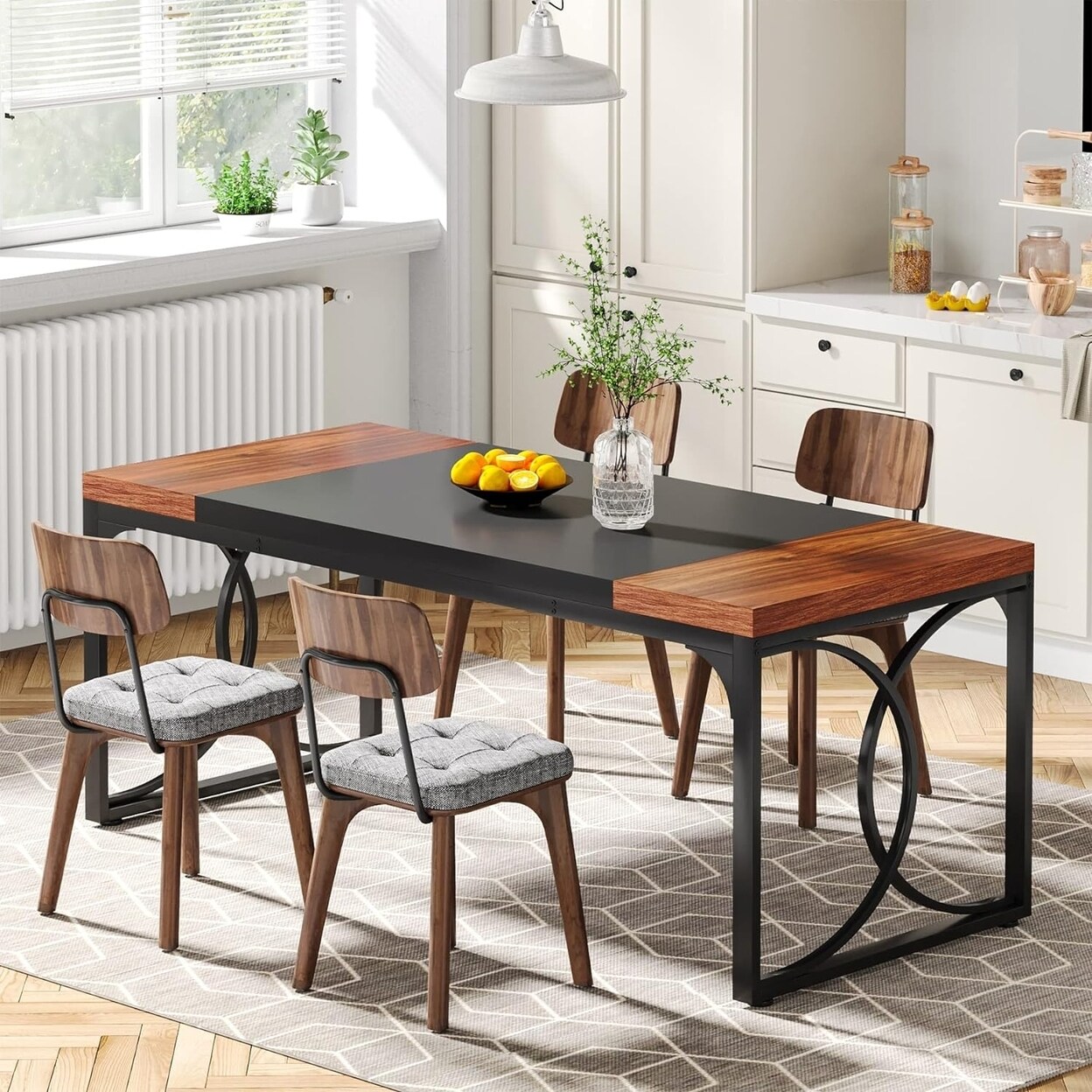 Tribesigns Rectangular Dining Table 63" Wood Kitchen Table with Strong Metal Frame Industrial Large Long Dining Room