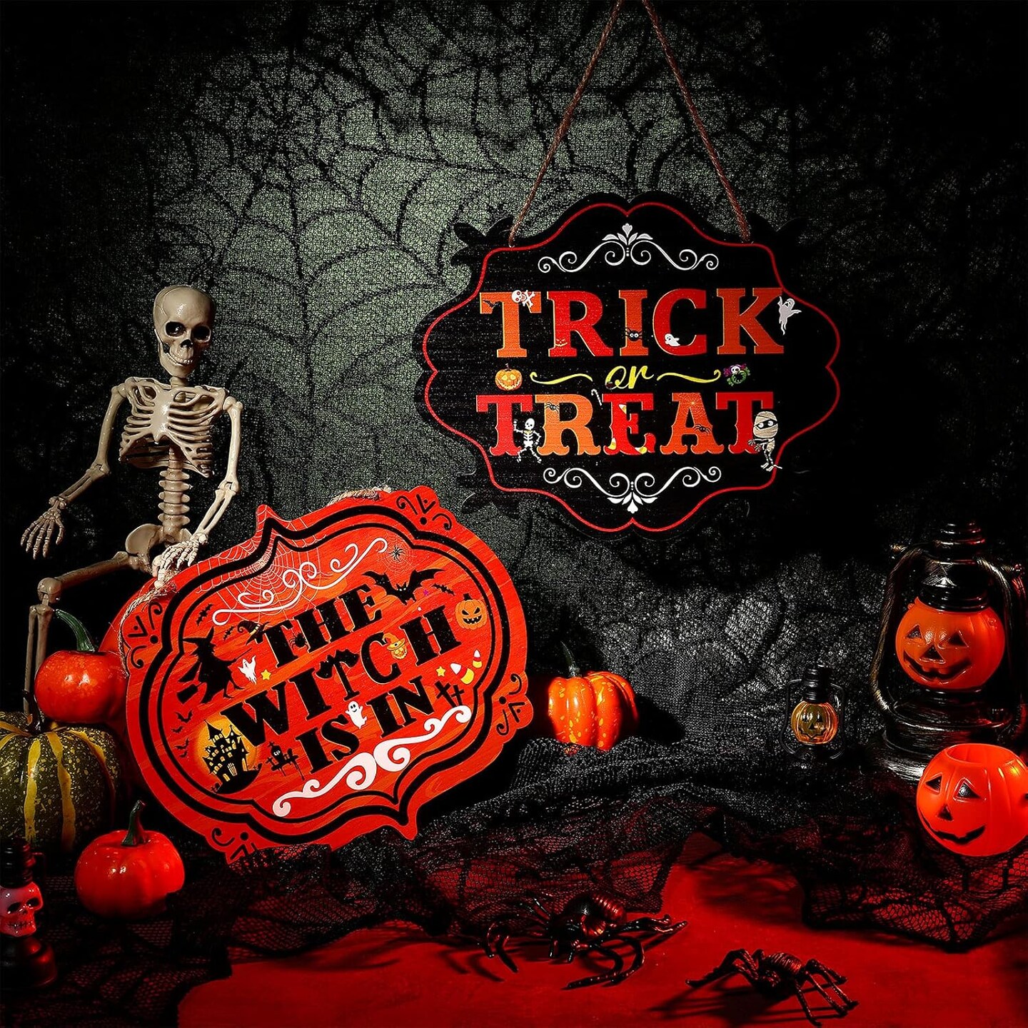 Trick or Treat & The Witch is in Hanging Sign Halloween Wreath Sign - 2 PCS