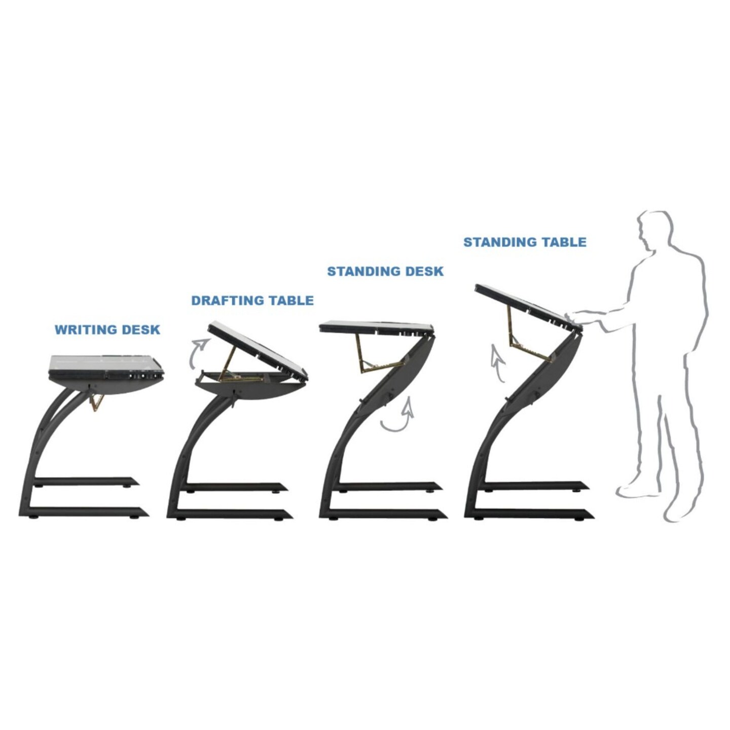 Triflex Craft/Drawing Table Adjustable Height In Charcoal Black / Clear Glass