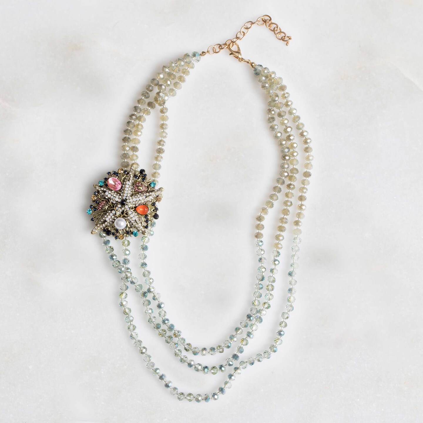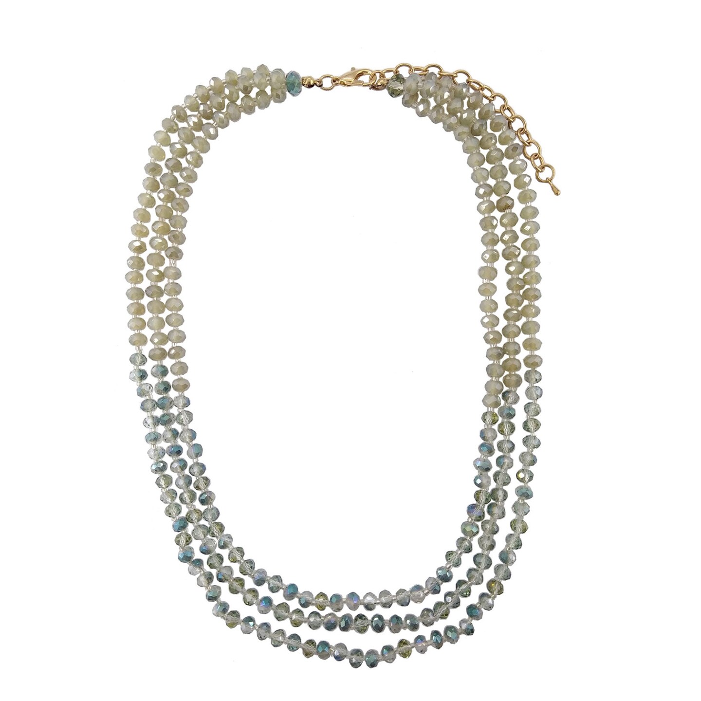 Triple Strand Beaded Necklace, Taupe and Blue