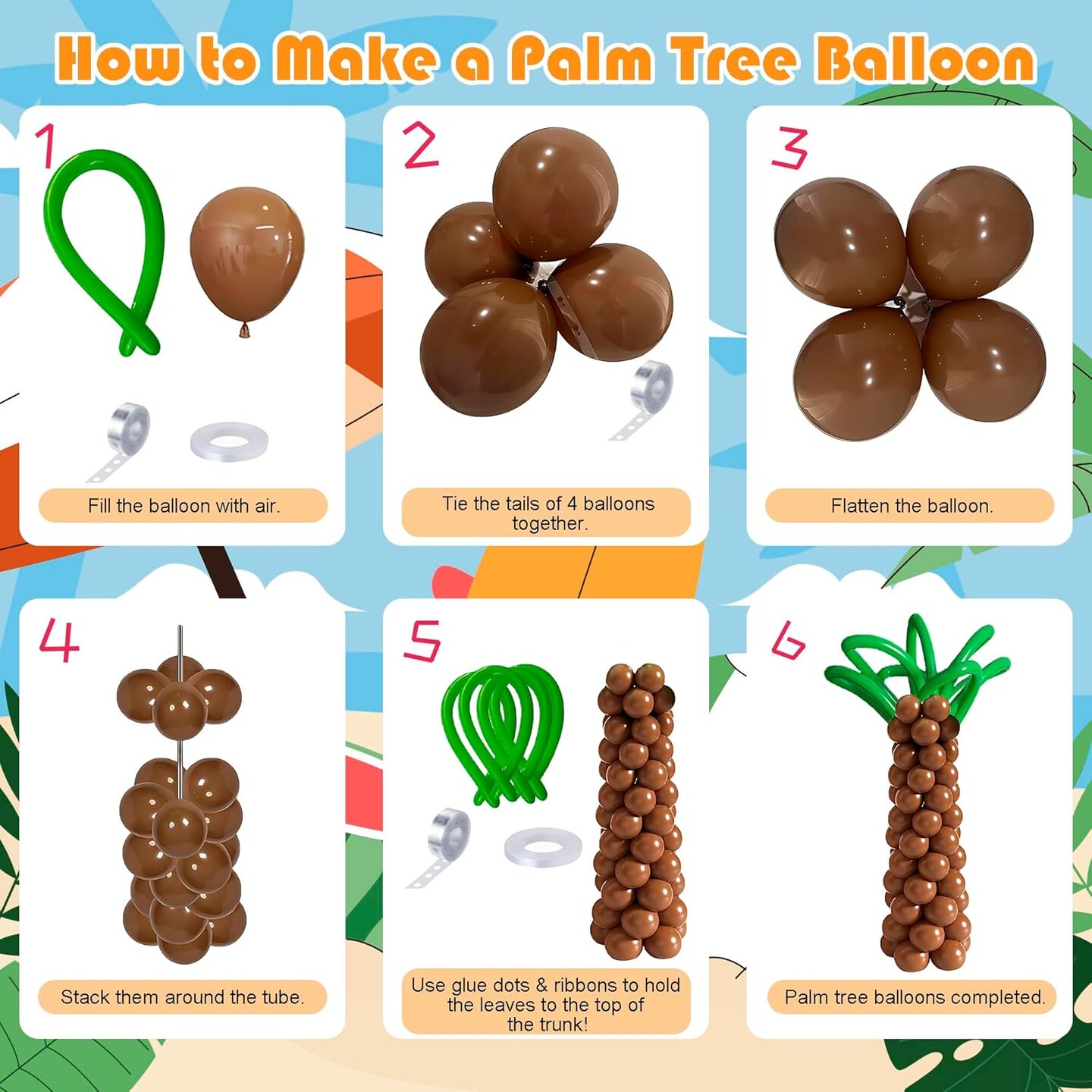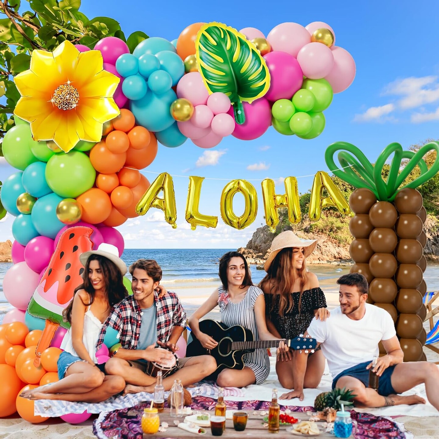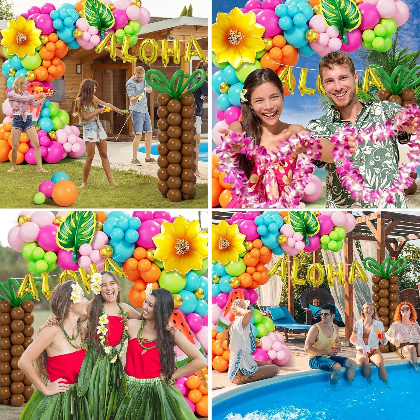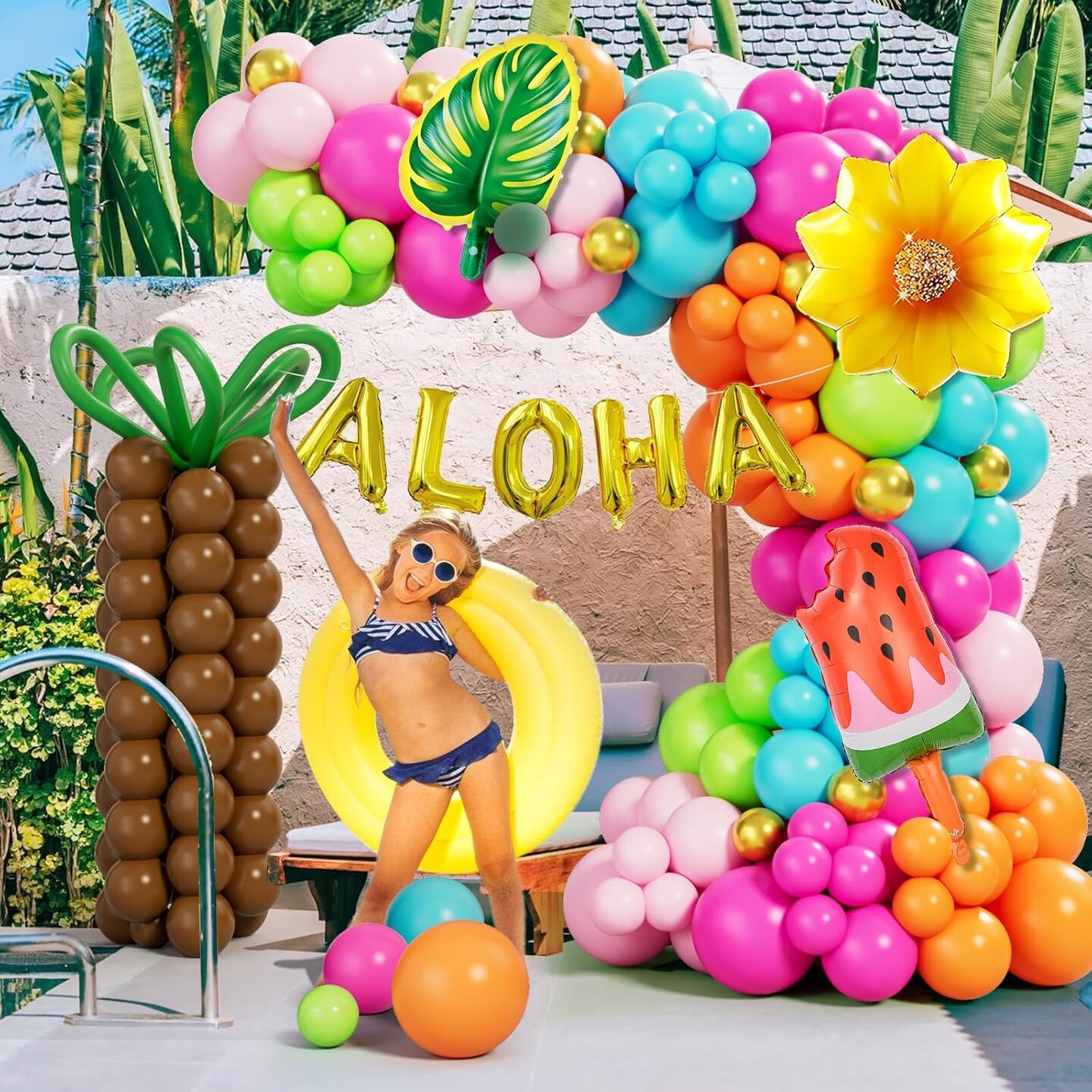 Tropical Balloon Arch Garland Kit – 178PCS Hawaiian Luau Party Decorations with Green, Hot Pink & Orange Balloons, Featuring Palm Tree, Aloha & Pineapple Foil Balloons for Summer Pool, Beach & Birthday Parties