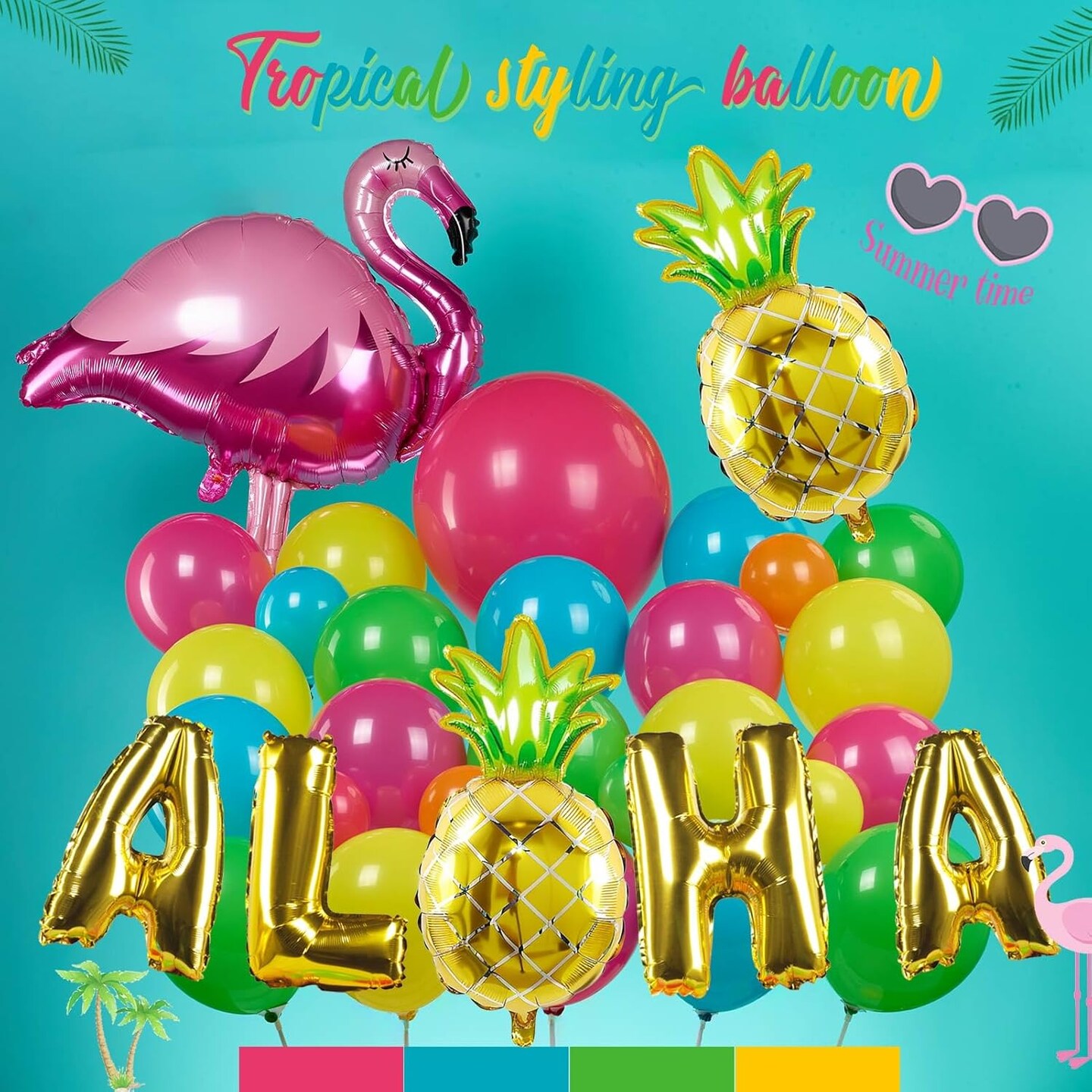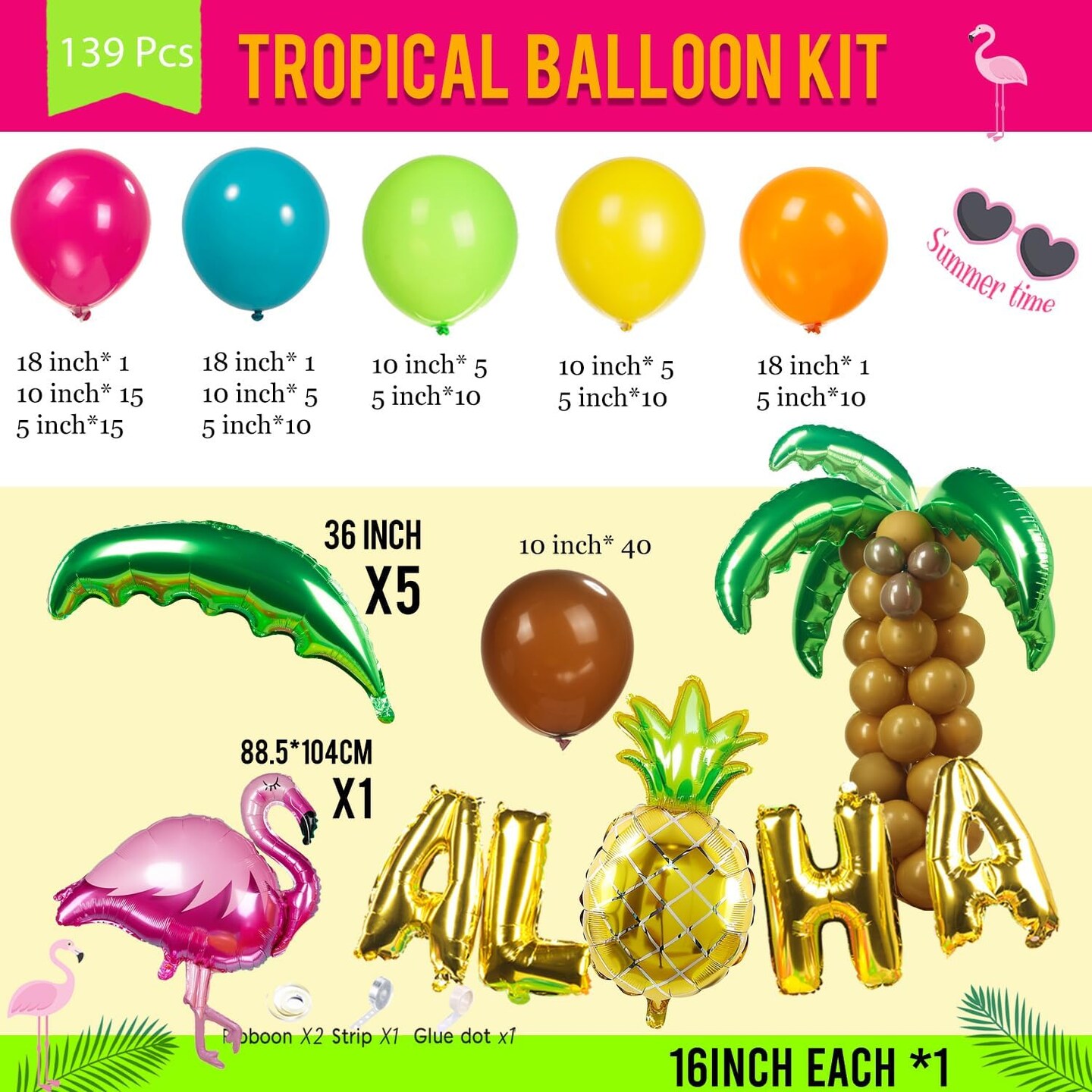 Tropical Balloon Garland Arch Kit, 139pcs with Flamingo Letter Coconut Tree Pineapple Letter Mylar Balloons