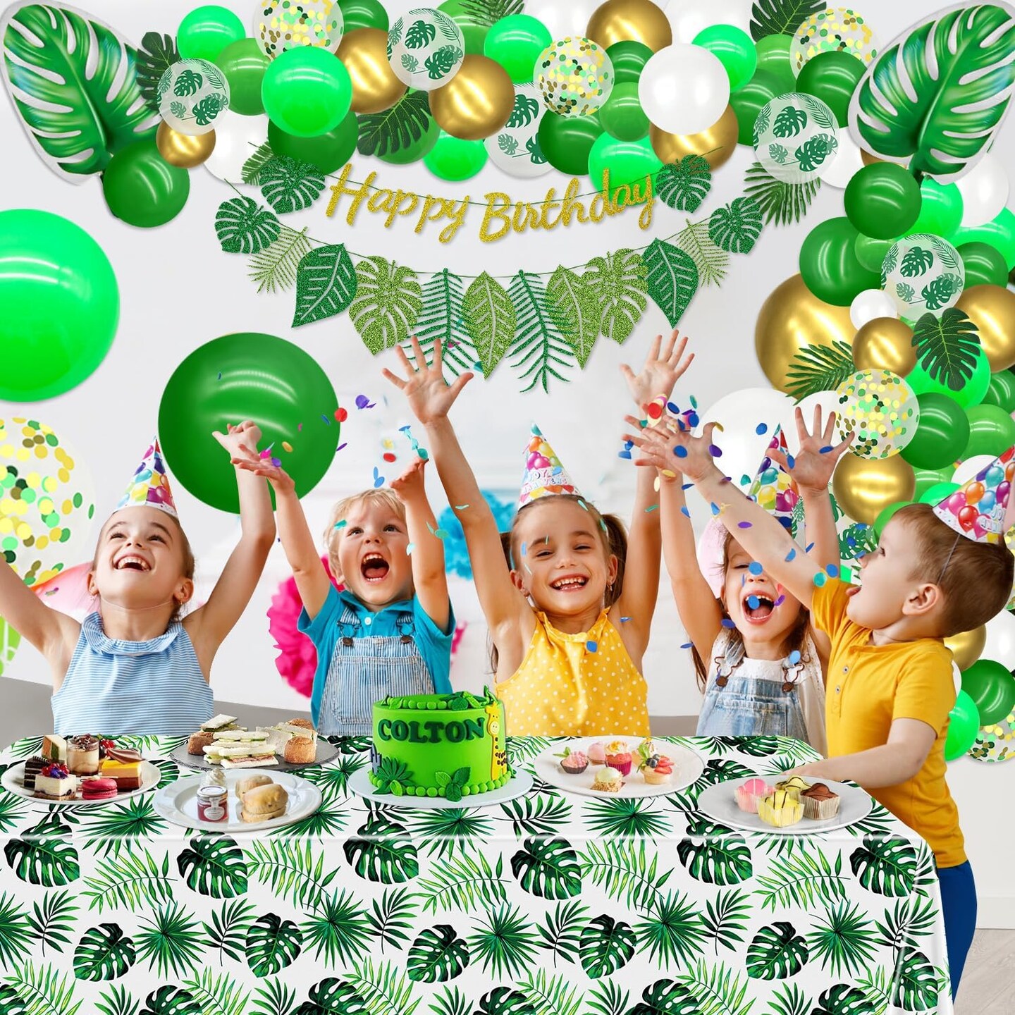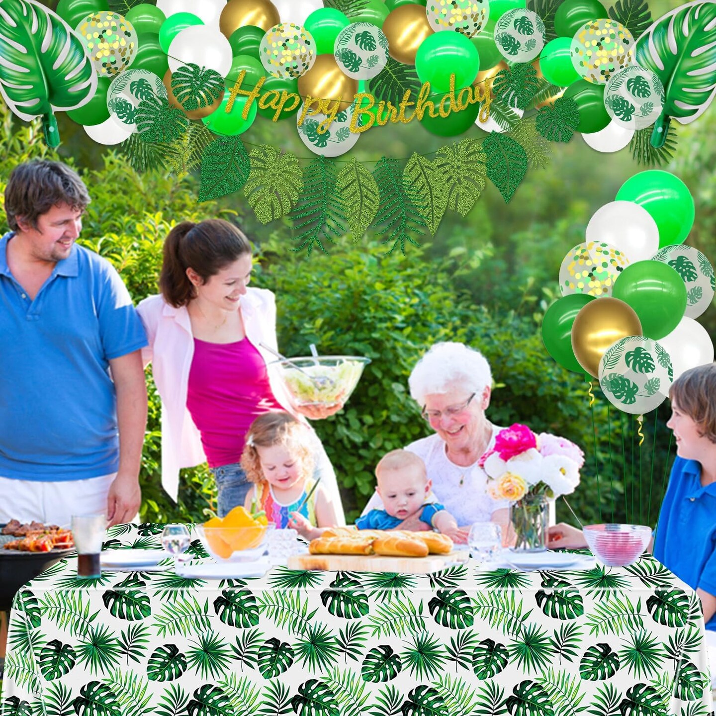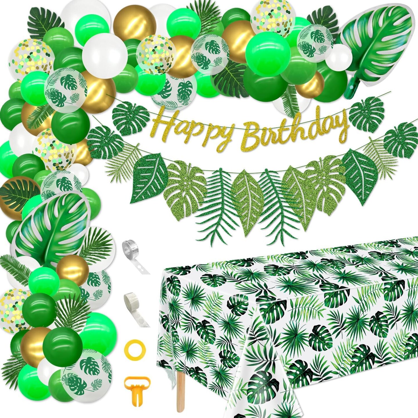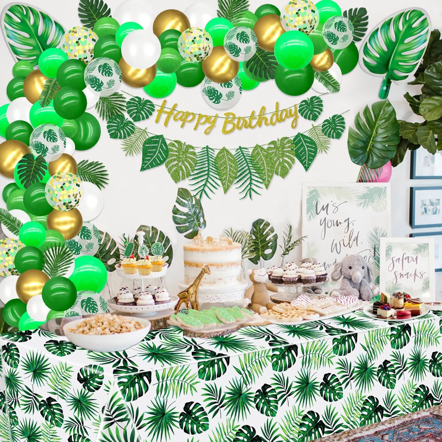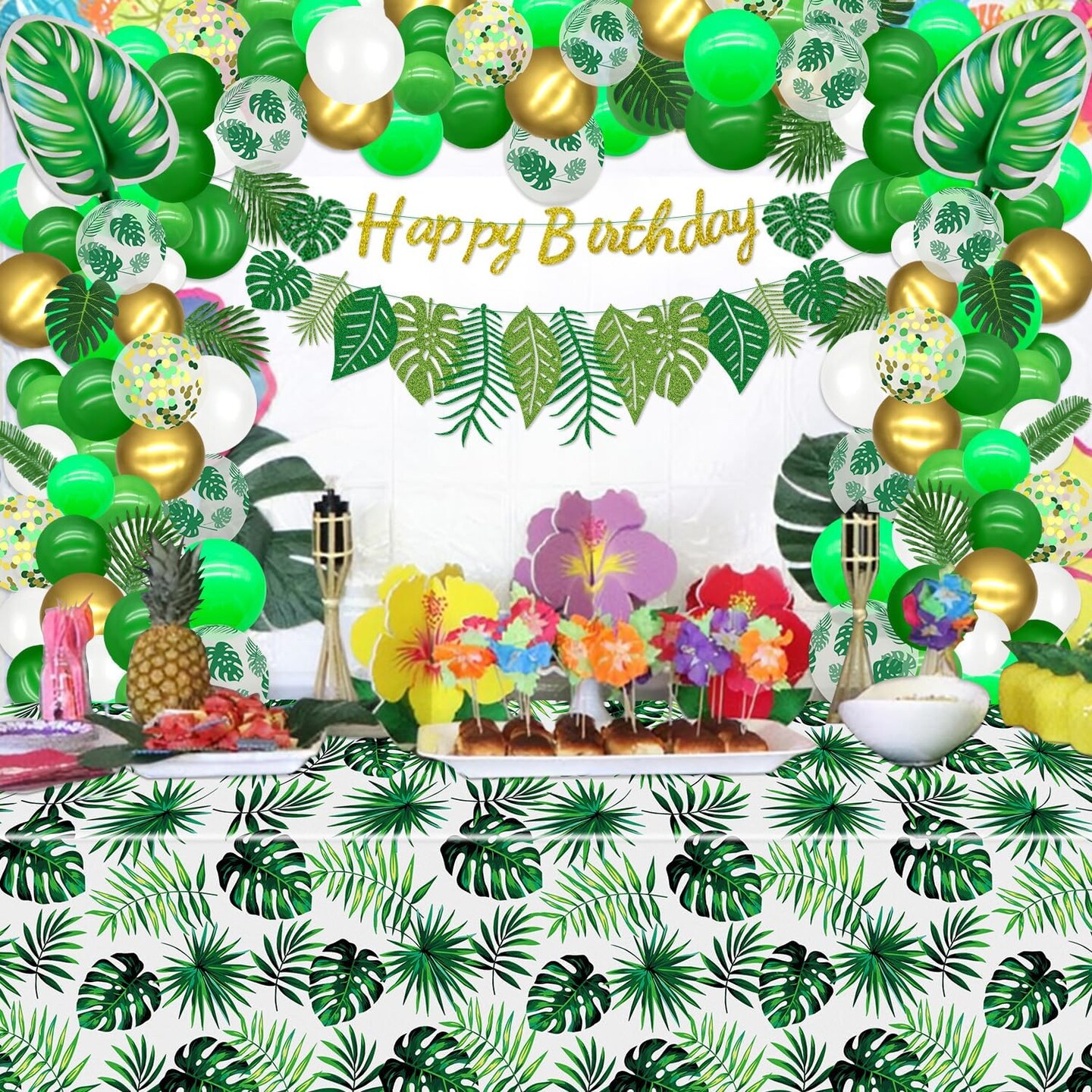 Tropical Balloons Arch Garland Kit Hawaiian Party Happy Birthday Banner Tropical Palm Leaves Tablecloth for Tropical Hawaii Aloha Luau Dinosaur Safari Baby Shower Wedding Theme Party Decorations