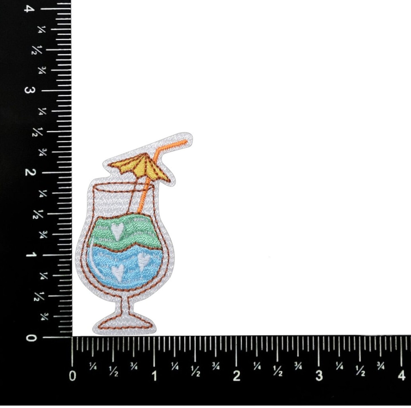 Tropical Drink, Cocktail with Umbrella, Embroidered, Iron on Patch