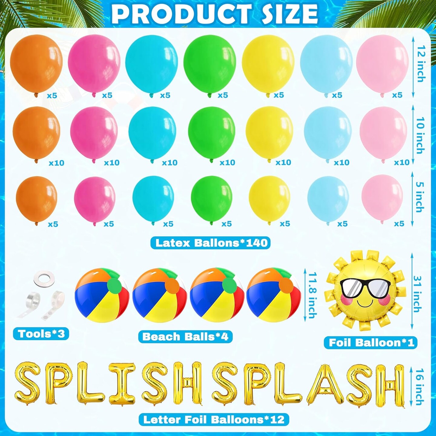 Tropical Hawaiian Luau Splish Splash Balloon Garland Arch Kit 160Pcs (7 Colors)