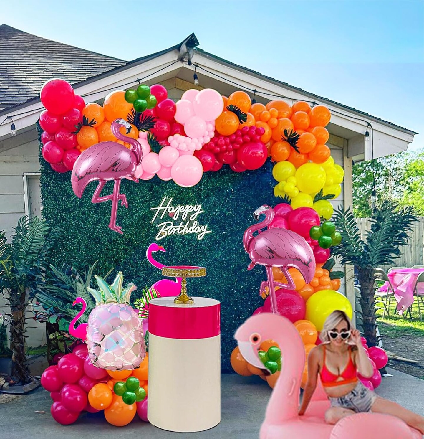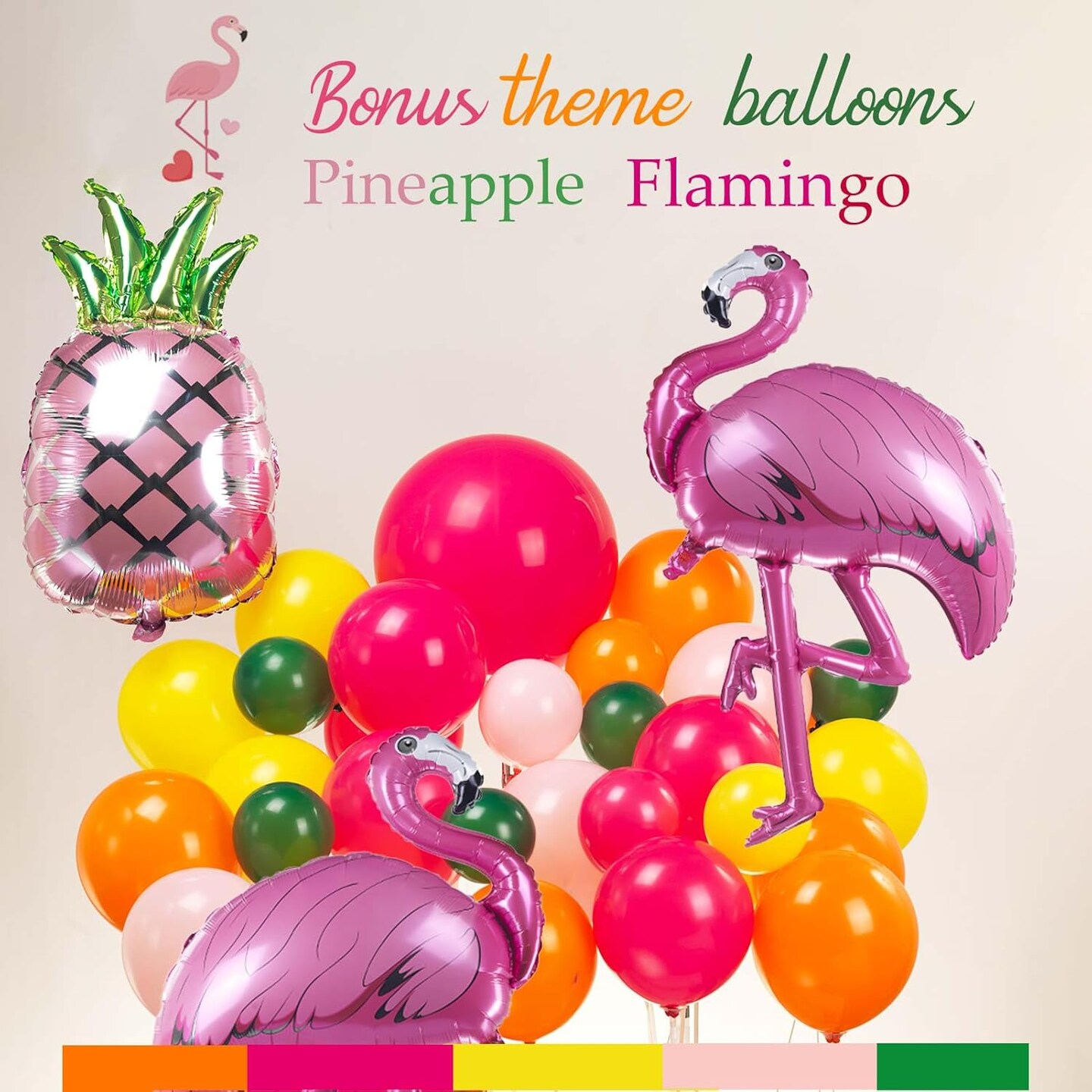 Tropical Hot Pink and orange flamingo Balloons garland arch kit 130pcs with pineapple for Summer Beach luau aloha theme party decorations Pool Party Supplies